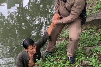 ตำรวจสายตรวจ สน.ประชื่น ช่วยเหลือชายขี้เมาตกน้ำ