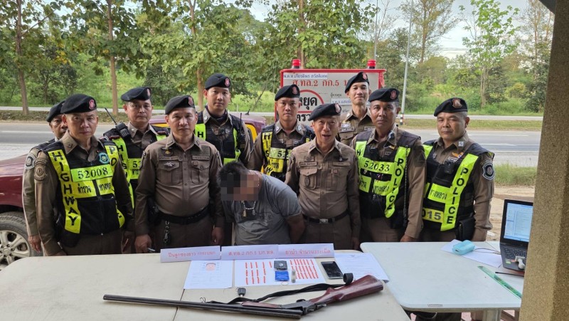 ตำรวจทางหลวงลำปางรวบชายวัย 42 พบยาบ้า 338 เม็ด ปืนลูกซองเถื่อน และตรวจพบสารเสพติดในร่างกาย