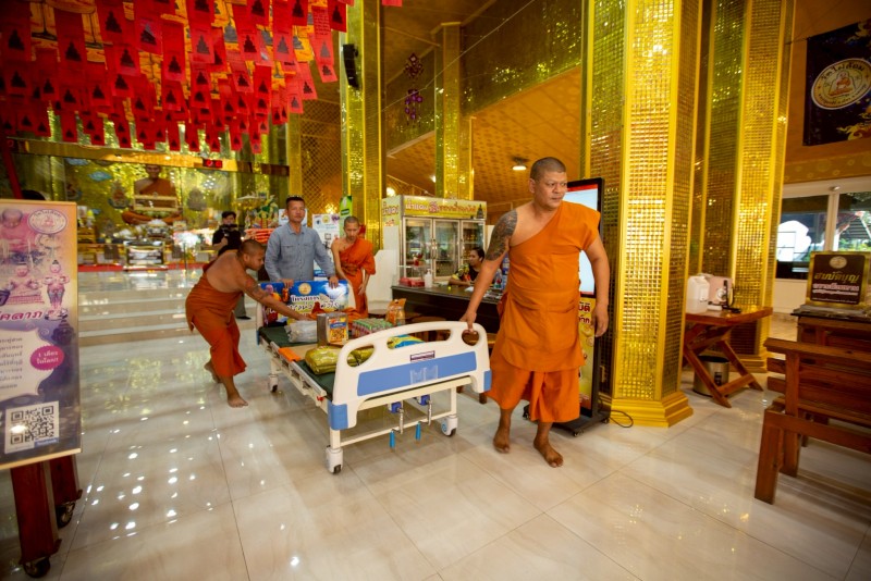 แม้จะเป็นพื้นที่ที่ห่างไกลจากที่ตั้งของวัดไผ่ล้อมพระอารามหลวง จังหวัดนครปฐม แต่พระครูปลัดสิทธิวัฒน์ หลวงพี่น้ำฝน ผู้รักษาการแทน เจ้าอาวาสฯ ยังคงขับเคลื่อนโครงการธนาคารแห่งกำลังใจ เพื่อสงเคราะห์ญาติโยมที่ประสบปัญหาในการดำเนินชีวิต หนึ่งในนั้นคือการจัดหาเตียงสำหรับผู้ป่วยให้กับผู้สูงวัย และผู้ป่วยติดเตียงซึ่งมีความจำเป็นในการพักฟื้นและรักษาตัว รวมถึงยังมีการประสานงานให้ความช่วยเหลือในด้านต่างๆ เพื่อให้วัดยังคงเป็นศูนย์กลางแห่งการช่วยเหลือและเป็นทางเลือกสำหรับประสานงานกับหน่วยงานต่างๆ ด้วย