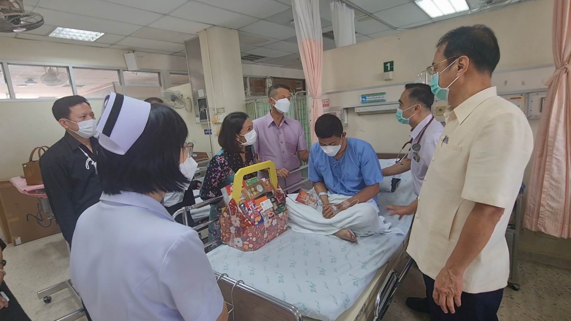 ส่วนเจ้าหน้าที่ดับเพลิงเทศบาลเมืองสมุทรสงคราม ซึ่งสำลักควัน ขณะปฏิบัติหน้าที่ รักษาตัวที่โรงพยาบาลสมเด็จพระพุทธเลิศหล้า ทราบชื่อภายหลังคือนายภานุวัฒน์ แก้วไผ่หาญ ล่าสุดอาการปลอดภัยแพทย์ให้นอนพักฟื้นตรวจระดับออกซิเจนในเลือด ที่ชั้น 5 อาคารกาญจนาภิเษก โดยนายสมนึก พรหมเขียว ผู้ว่าราชการจังหวัดสมุทรสงครามพร้อมหน่วยงานที่เกี่ยวข้องได้เดินทางไปเยี่ยมพร้อมมอบกระเช้าให้กำลังใจนายภาณุวัฒน์ โดยหลวงพ่อเพิ่มได้มอบเงินช่วยเหลืออีก 2,000 บาทด้วย