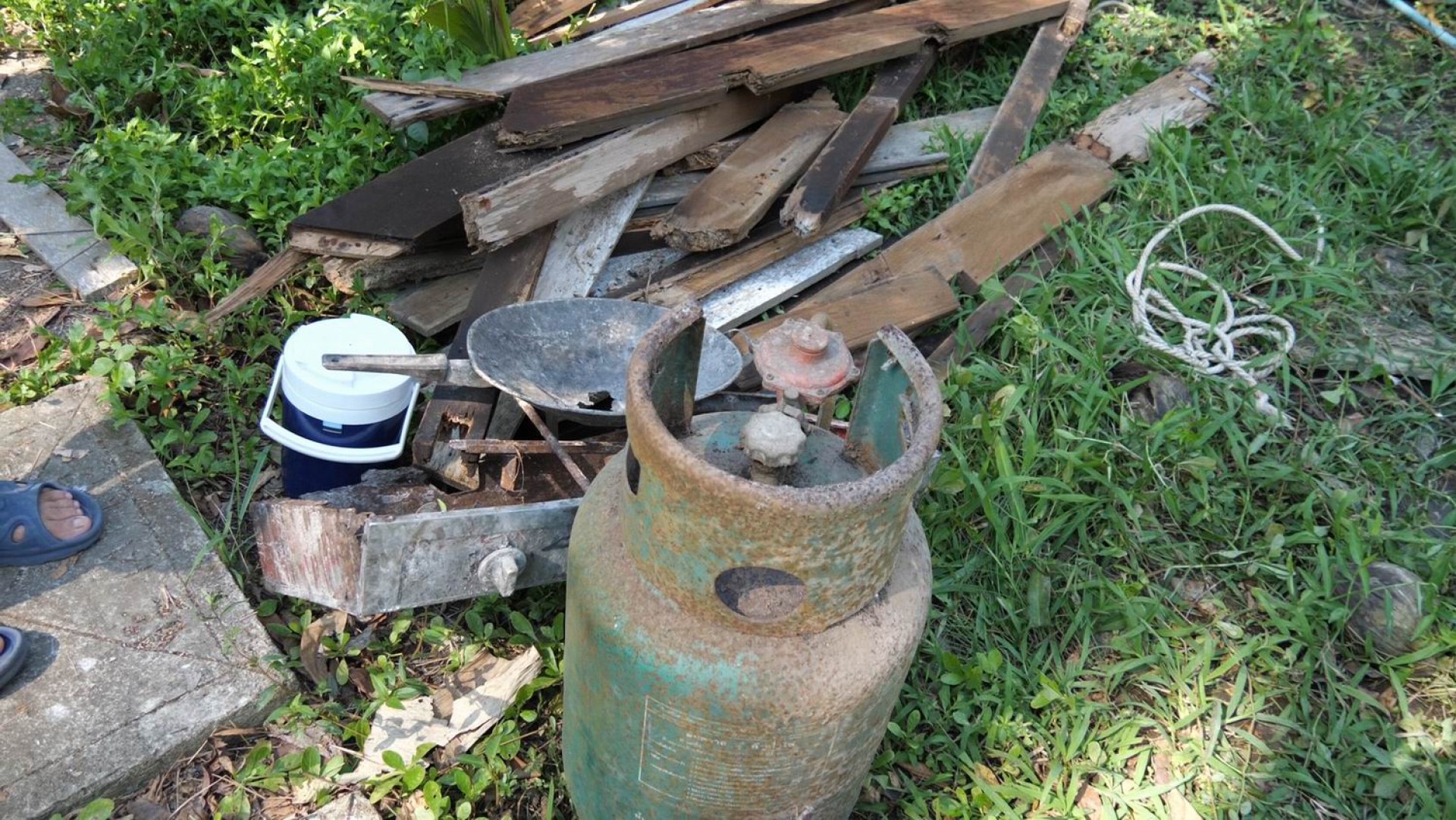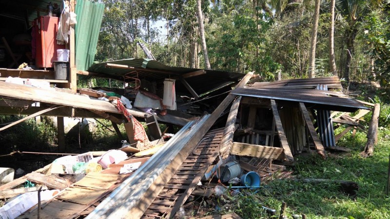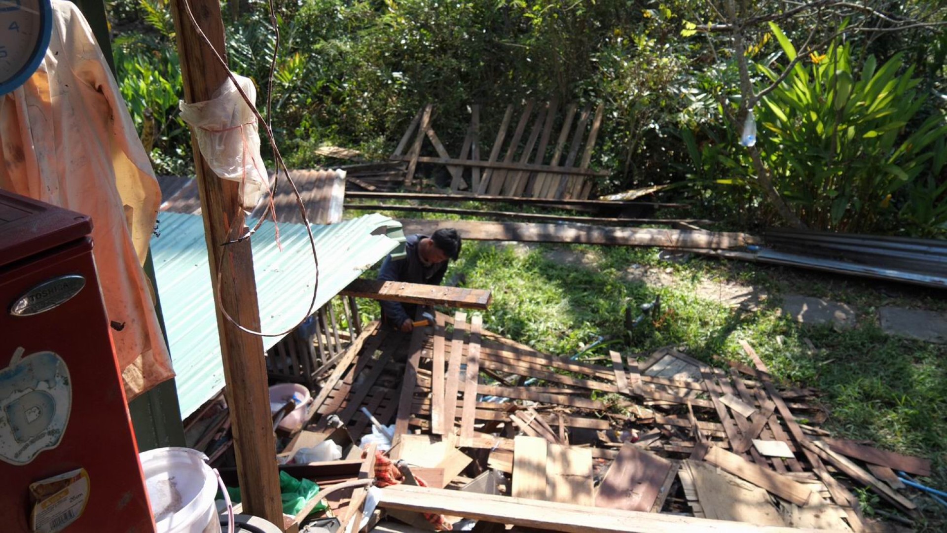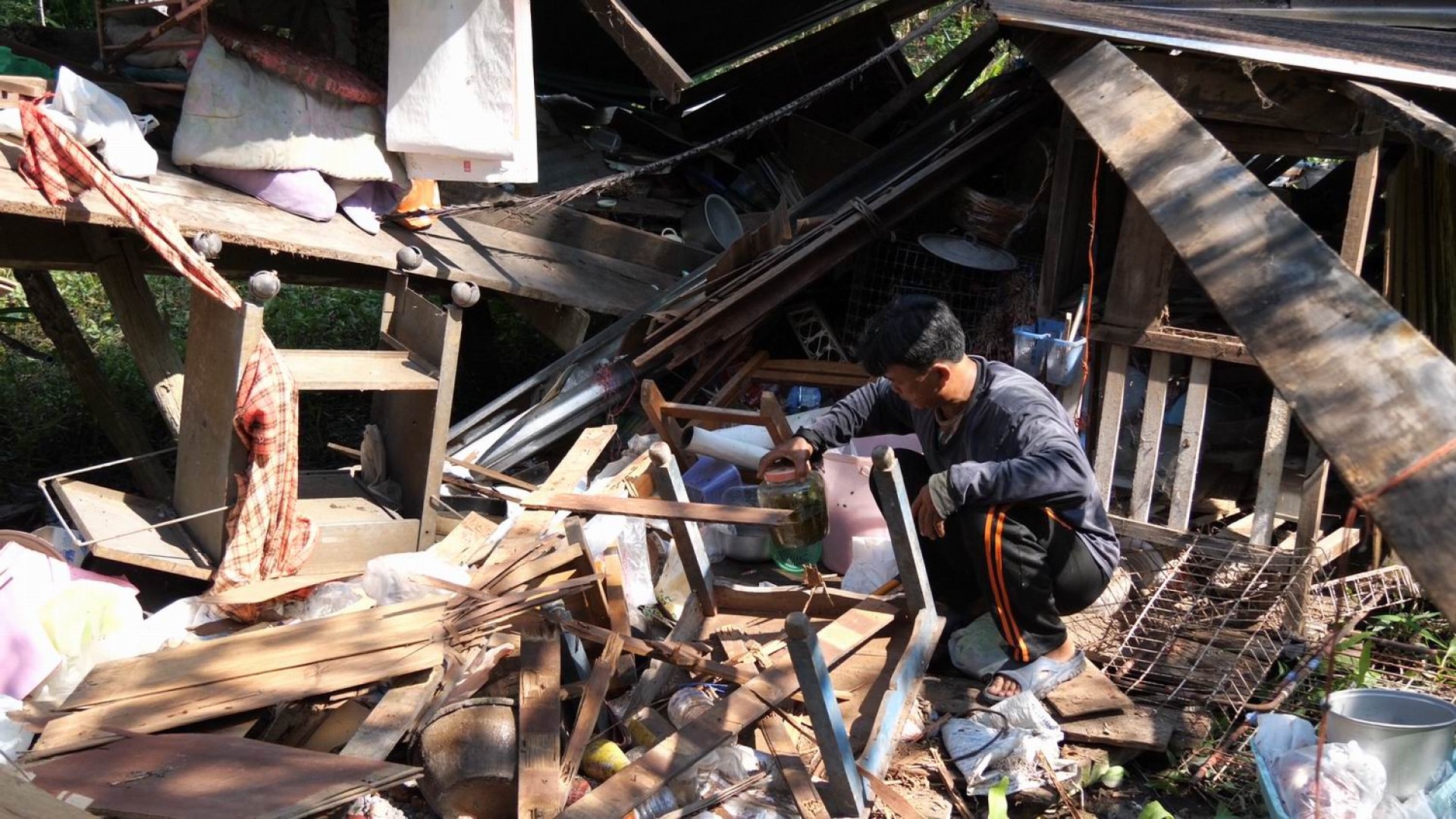 นายประสิทธิ์ ผิวสว่าง 41 ปี สมาชิก หมู่ 5 อบต.บางนางลี่ กล่าวว่าสาเหตุน่าจะเกิดจากเสาหักไป 1 ต้นทำให้ดึงโครงสร้างห้องครัวพังลงทั้งหมด