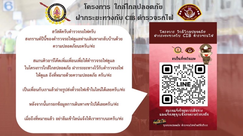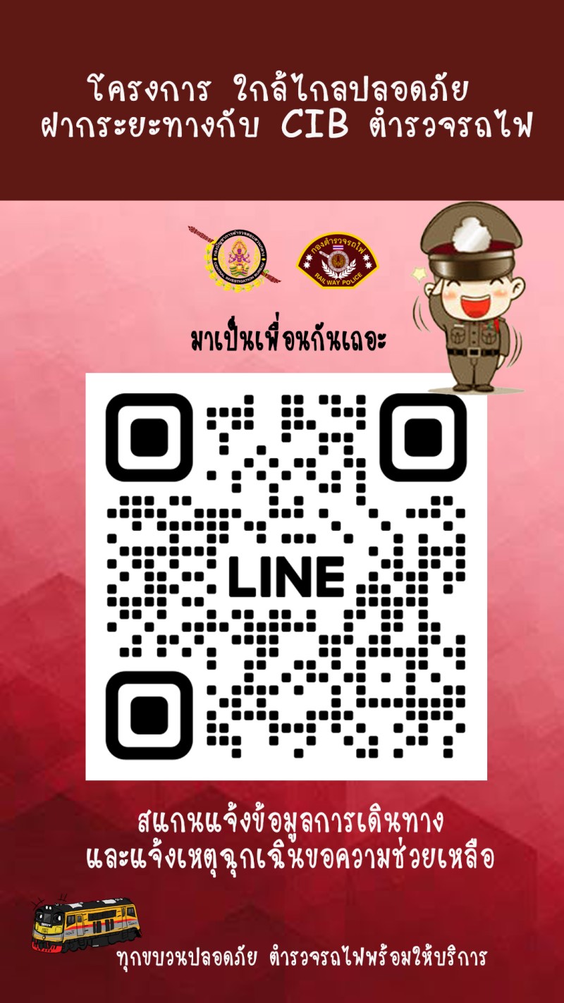 โดยการประชาสัมพันธ์ให้ประชาชนสแกนคิวอาร์โค้ด Line OA ตำรวจรถไฟสอบสวนกลาง