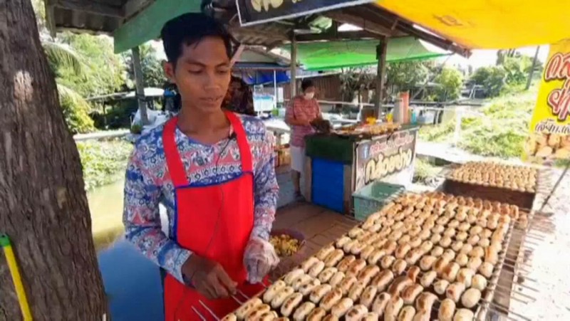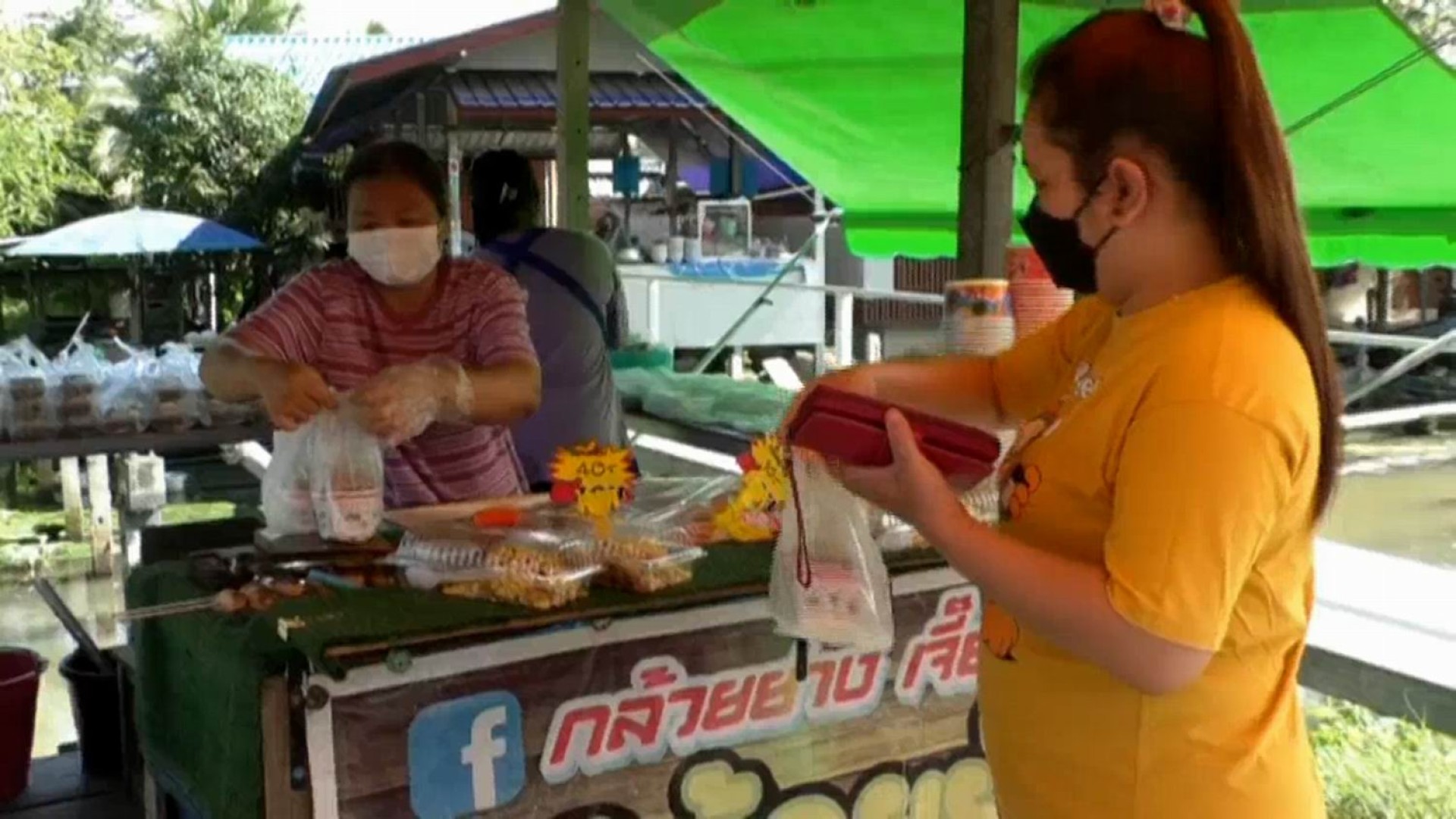 ผู้สื่อข่าวรายงานว่า ริมถนนปากท่อสายเก่า หมู่ 8 ตำบลวัดประดู่ อำเภออัมพวา จังหวัดสมุทรสงคราม พบนายเทิดศักดิ์ ขาวสะอาด อายุ 38 ปี ได้มาเปิดร้านขายกล้วยปิ้งยัดไส้ท็อปปิ้ง เช่น เผือก, มันม่วง, มันส้ม, ฟักทอง ลูกเดือย, ถั่วเขียวผ่าซีก และ ข้าวโพด เป็นต้น โดยทุกอย่างนั้นทางพ่อค้าได้ทำเองแบบสดใหม่วันต่อวัน นำมาราดหน้ากล้วยปิ้งอัดแน่นด้วยคุณภาพ ส่วนกล้วยก็เป็นกล้วยสวนลูกเล็กเนื้อหวาน ไม่มีไส้ แบบสุกกำลังดี นำมาปลอกเปลือกแล้วเสียบด้วยแท่งสแตนเลส สั่งทำพิเศษ ย่างบนเตาไฟ กลับด้านเป็นระยะ ทาผิวด้วยน้ำตาลมะพร้าวแท้ จนสุกกำลังดี หอมกรุ่น สดใหม่ นำขึ้นมาตัดแต่งตรงที่ไหม้ออก แล้วนำมาหั่นเป็นชิ้นจัดใส่กล่อง จำนวน 8 ลูก อัดแน่นด้วยคุณภาพ ในราคากล่องละ 30 บาท ส่วนหน้าท้อปปิ้งกล่องละ 40 บาท พร้อมน้ำจิ้มจากน้ำตาลมะพร้าวแท้รสเด็ดเมืองแม่กลอง โดยมีลูกค้าแวะเวียนมาอุดหนุนอย่างต่อเนื่องไม่ขาดสาย