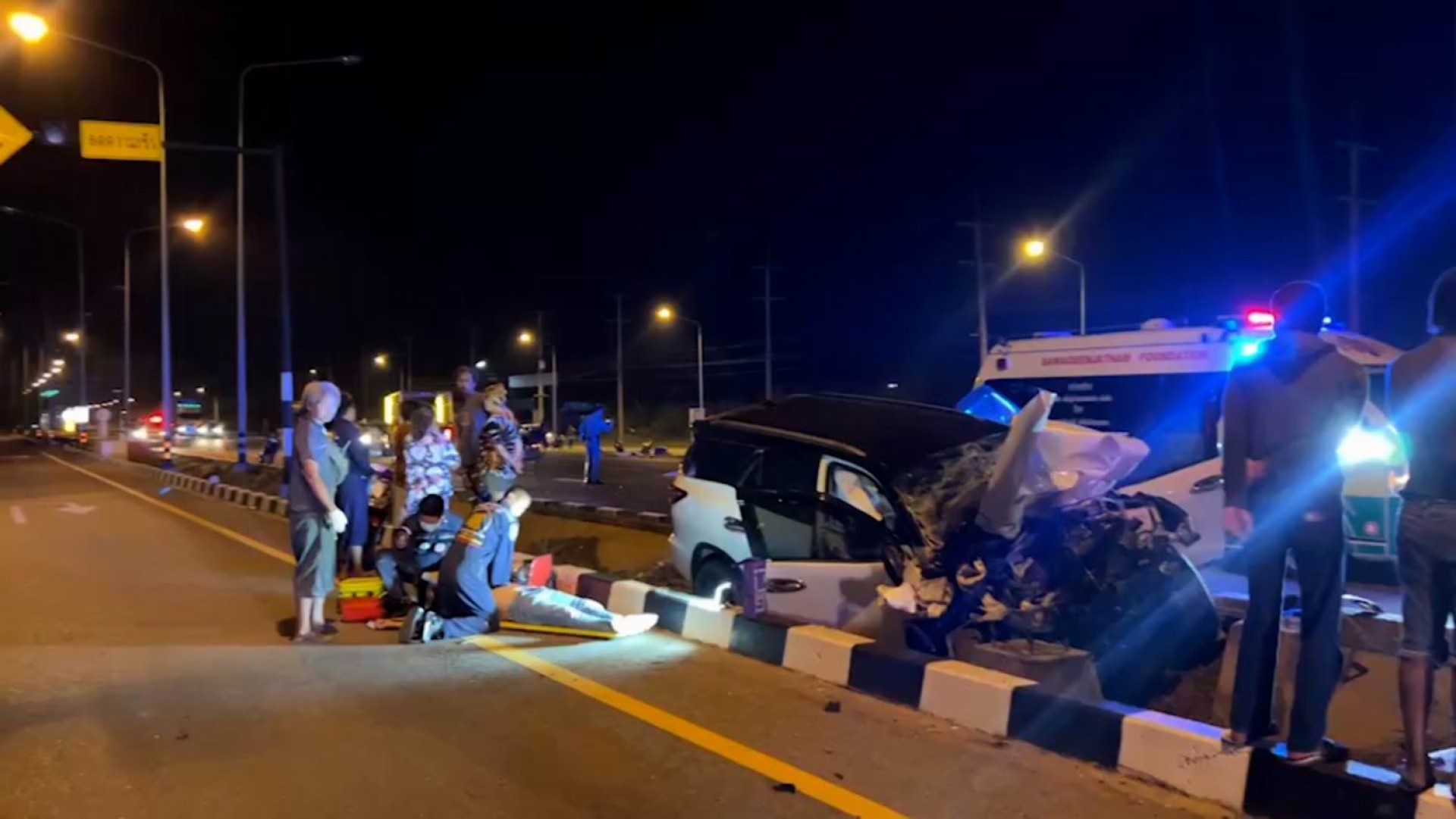 เมื่อเวลา 04.45 วันที่ 21 พฤษภาคม 2566 พ.ต.ท.อมรเทพ เกิดมี สว.สอบสวน สภ.ยี่สาร ได้รับแจ้งอุบัติบนนถนนพระราม 2 ขาล่องใต้ กิโลเมตรที่ 78 ต.แพรกหนามแดง อ.อัมพวา จ.สมุทรสงคราม จะไปตรวจสอบพร้อมเจ้าหน้าที่กู้ภัยมูลนิธิสว่างเบญจธรรมสมุทรสงคราม ในที่เกิดเหตุพบนายขจรศักดิ์ อมศิริ อายุ 33 ปี ชาว ต.วังมะนาว อ.ปากท่อ จ.ราชบุรี นอนหมดสติหายใจรวยรินอยู่บนที่นั่งคนขับ เจ้าหน้าที่นำร่างลงมาพยายามปั้มหัวใจช่วยชีวิตและไม่สามารถยื้อชีวิต ใกล้กันบริเวณเกาะกลางถนน พบรถโตโยต้าฟอร์จูเนอร์สีขาวทะเบียน 2ขก9572 กรุงเทพมหานคร ชนเข้ากับเสาไฟฟ้าส่องสว่างสภาพด้านหน้าพังเสียหายยับเยิน ห่างไปประมาณ 80 เมตร บริเวณกลางถนนพระราม 2 พบศพนางมายิต้า อายุ 51 ปี ชาวเมียนมา ส่วน ริมถนนด้านซ้าย พบศพนายชิดโก อายุ 37 ปี ทั้ง 2 รายเป็นชาวเมียนมา เสียชีวิตคาที่ สภาพร่างกายแหลกเหลว รวมเสียชีวิต 3 ราย ใกล้กันพบรถจักรยานยนต์ยี่ห้อฮอนด้าเวฟสีดำ ทะเบียน 1กข8838 ราชบุรี ซึ่งดัดแปลงติดพ่วงข้างบรรทุกปลาทูมาเต็มคัน ตกอยู่ในร่องน้ำถนนคู่ขนาน สภาพด้านท้ายพังยับเยิน ปลาทูกระจายเกลื่อนถนน