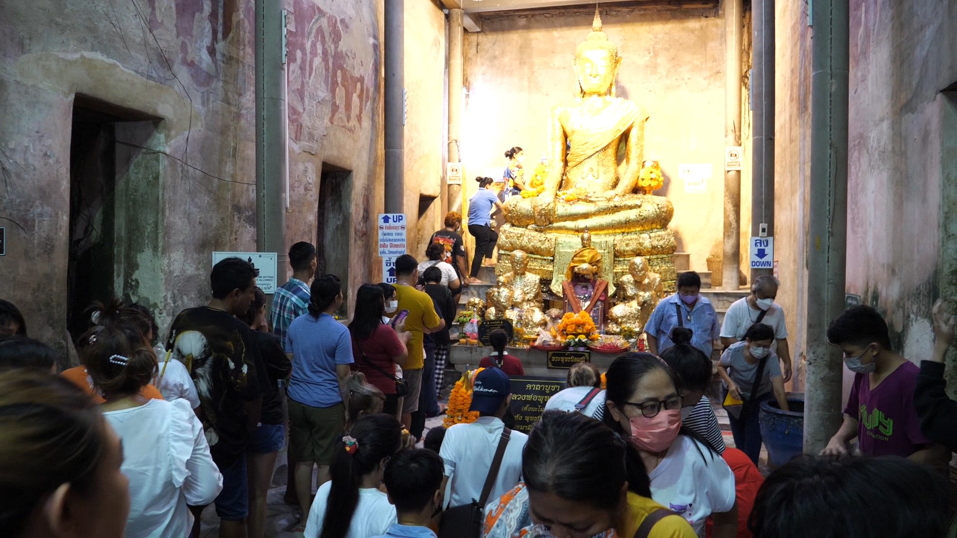ผู้สื่อข่าวเดินทางไปสำรวจบรรยากาศที่วัดบางกุ้ง ต.บางกุ้ง อ.บางคนที จ.สมุทรสงคราม พบว่ามีนักท่องเที่ยวเดินทางโดยรถยนต์มาจอดรถริมถนนอัมพวา-บางคนที เป็นแถวยาวหลายกิโลเมตร และเดินเท้าเข้าไปต่อคิวเพื่อรอเข้ากราบไหว้ขอพรหลวงพ่อพุทธนิลมณี ภายใน โบสถ์ปรกโพธิ์ อัลซีนไทยแลนด์ กันเป็นจำนวนมาก ทำให้ต้องวนแถวไปรอบวัดยาวกว่า 1 กิโลเมตร บางรายต้องยืนรอนานกว่า 4 ชั่วโมง บางส่วนต้องรีบไม่สะดวกจะยืนรอต่อแถว ก็จะยืนไหว้ขอพรรอบๆโบสถ์ด้านนอก นอกจากนี้ก็มีประชาชนนำข้าวต้มมัดมาแก้บนบริเวณภายนอกหน้าโบสถ์มหาอุด เป็นจำนวนมาก โดย ร.อ.เอนก แจ่มกระจ่าง ไวยาวัจกรวัดบางกุ้ง(ข้าราชการบำนาญ) ได้นำเจ้าหน้าที่คอยให้บริการอำนวยความสะดวก