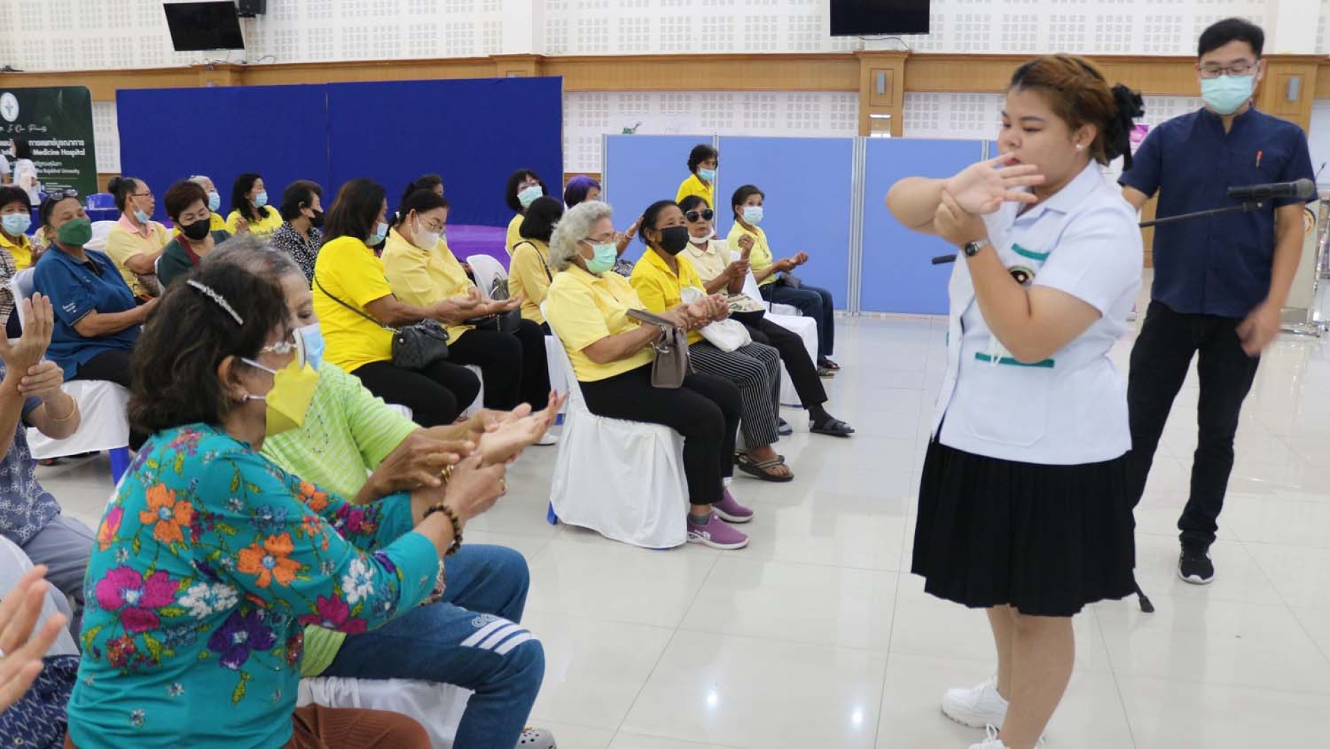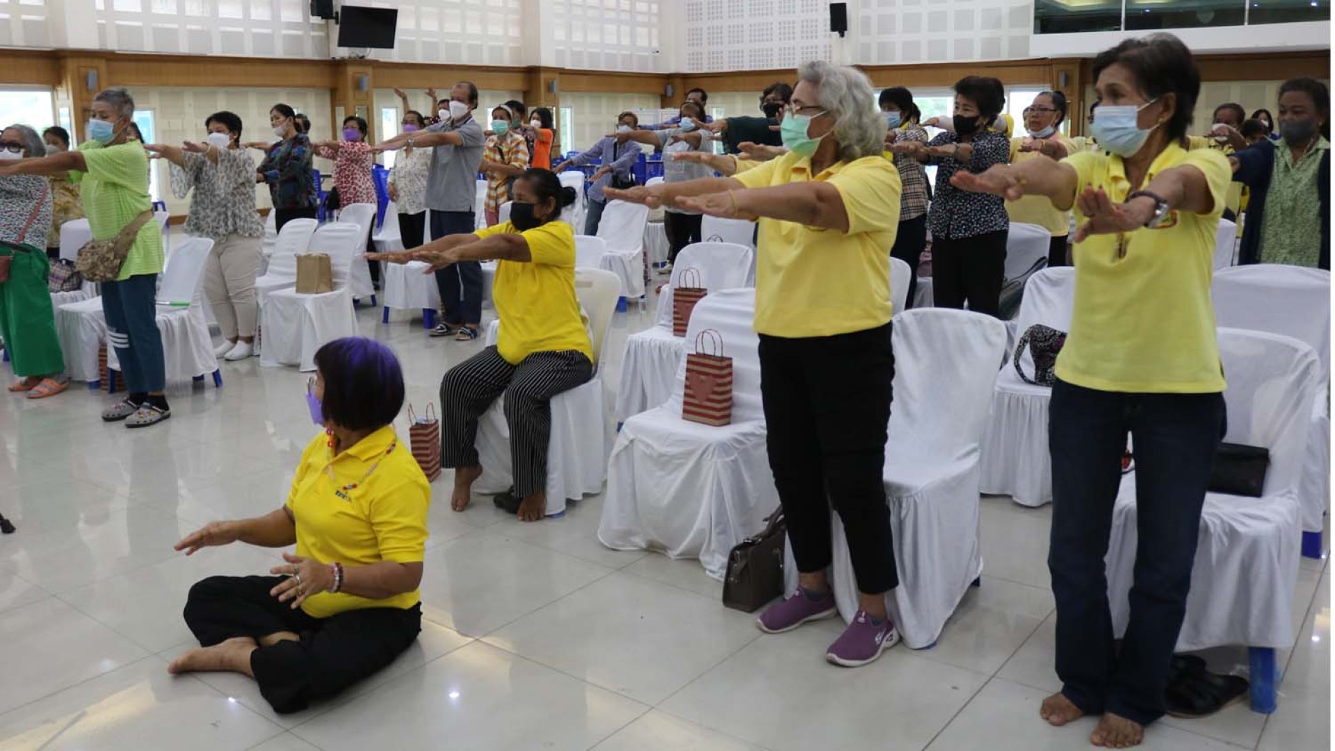 จากนั้นผู้สูงอายุได้รับความรู้เบื้องต้นในการออกกำลังกายสำหรับผู้สูงอายุ แบบขยับกายสบายชีวี การตรวจสุขภาพเบื้องต้น การชั่งน้ำหนักวัดความดัน การดูแลสุขภาพด้วยแพทย์แผนไทยนวดประคบ การดูแลสุขภาพด้วยแพทย์แผนจีนฝังเข็ม การจ่ายาแผนปัจจุบัน โดยวิทยากรจากมหาวิทยาลับราชภัฎสวนสุนันทา ศูนย์การศึกษาสมุทรสงคราม นอกจากนี้ยังจะได้ทัศนศึกษาแหล่งท่องเที่ยวทางศาสนสถาน คือ วัดพระศรีอารย์, วัดขนอน, อุทยานหินเขางู, พิพิธภัณฑ์จิปาถะภัณฑ์สถานบ้านคูบัว และเมืองโบราณคูบัว จังหวัดราชบุรี ด้วย