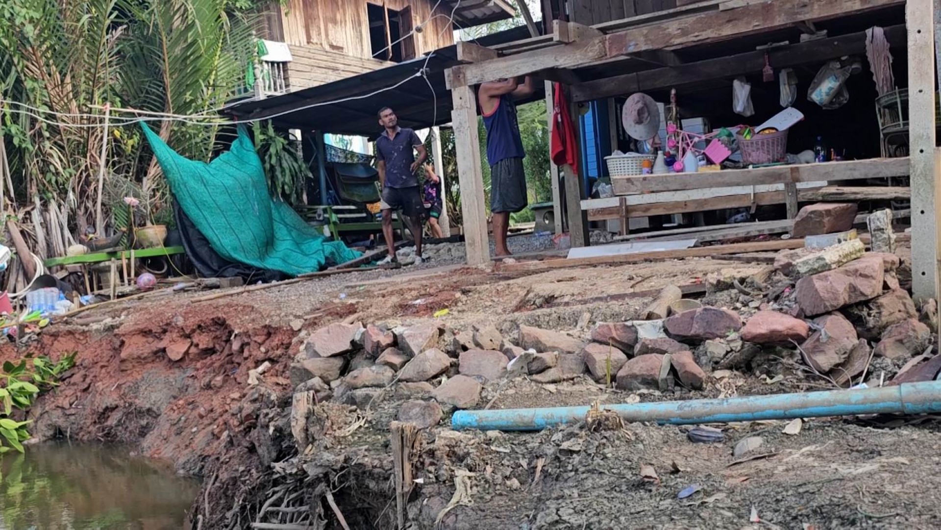 น.ส.ชาลินี กล่าวว่า บ้านของตนอาศัยกัน 5 คน มีบิดา มารดา ตน และเด็กๆอีก 2 คน ส่วนป้าที่อยู่ติดกันมีผู้สูงอายุ 1 คน เด็กพิการ 2 คน ก็ได้รับผลกระทบเช่นกัน ดินบริเวณหน้าบ้านเริ่มมีรอยร้าวแยกออกไม่นานก็คงพังลงน้ำเช่นกัน ซึ่งตนและครอบครัวก็ไม่รู้จะไปอยู่ที่ไหนแล้ว ไม่มีที่ไปแล้ว เพราะถอยร่นจนติดถนนแล้ว จึงวอนหน่วยงานที่เกี่ยวข้องเข้ามาช่วยเหลือ หรือมีแนวทางไหนจะช่วยเหลือได้บ้าง เพราะหากไม่ทำอะไรเลยบ้านก็คงพังลงน้ำ แน่นอน