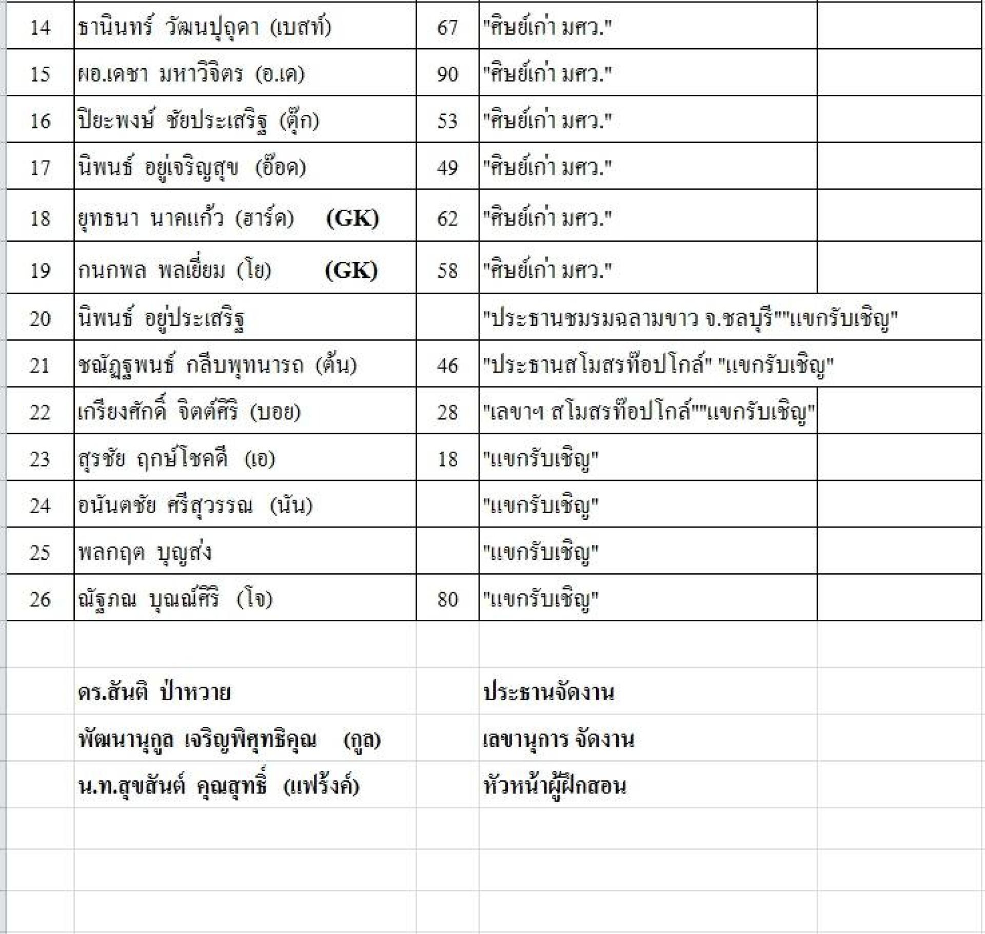 7.ดร. ชัยเมศร์ ชัยพัชรกุลพงษ์ (ดร.แก้ว) ที่ปรึกษา รมต. เกษรและสหกรณ์ / ศึกษาธิการ 8.เศรษฐพงษ์ ศิววงศ์ (ประธาน เดี่ยว ) ประธานสโมสรศิววงศ์ / รองประธานสโมสรราชประชา 9.วิชา ตู้จินดา เบอร์ 70 กรรมการผู้จัดการ Tako Foods Indutry Co;Ltd.