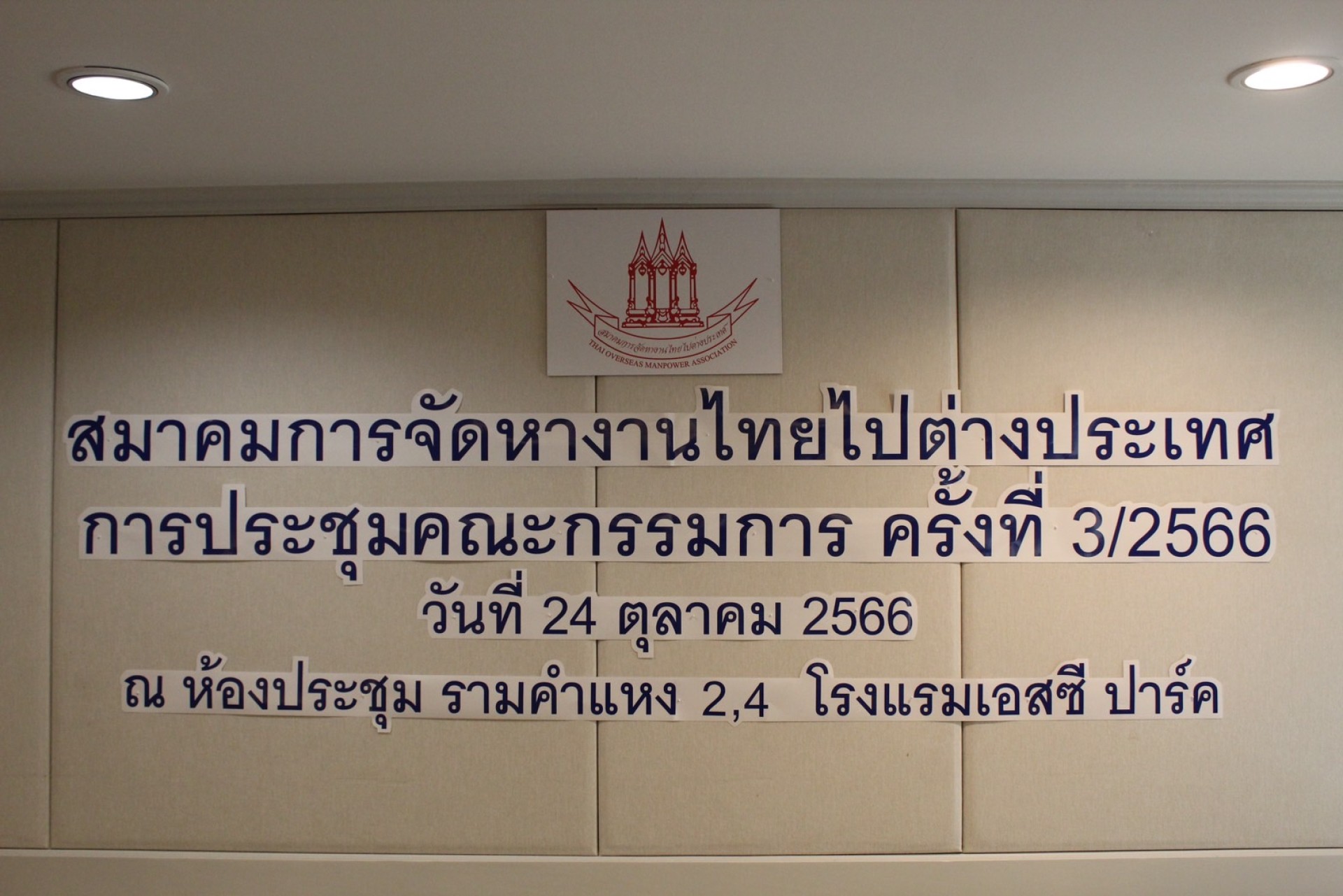 ซึ่งมีวาระการประชุม ที่สำคัญ ดังนี้: เรื่อง ประธานแจ้งที่ประชุมทราบ, เรื่อง รับรองรายงานประชุมการประชุม ครั้งที่ 2/2566, เรื่องสถานะการเงิน ณ วันที่ 24 ตุลาคม 2566, เรื่อง เข้าพบรัฐมนตรีว่าการกระทรวงแรงงาน ในวันที่ 1 พฤศจิกายน 2566, เรื่อง ส่งกำลังใจสู่แรงงานไทยในอิสราเอล พร้อมมอบเงินสมทบให้กับปลัดกระทรวงแรงงาน เพื่อให้ช่วยเหลือคนไทยในอิสราเอล, เรื่อง การเปิดตลาดแรงงานในประเทศต่างๆ, ตลอดทั้ง เรื่อง มิจฉาชีพแอบอ้างชื่อบริษัทจัดหางานเพื่อหลอกไปทำงานต่างประเทศ ซึ่งเรื่องนี้เป็นเรื่องสำคัญที่ทางสมาคม จะได้ดำเนินการอย่างเร่งด่วน เพื่อแก้ปัญหากลุ่มมิจฉาชีพที่มาแอบอ้างบริษัทจัดหางานไปหลอกเงินจากประชาชน ซึ่งการประชุมในครั้งนี้ ได้รับความร่วมมือจากคณะกรรมการและที่ปรึกษา เป็นอย่างดี./