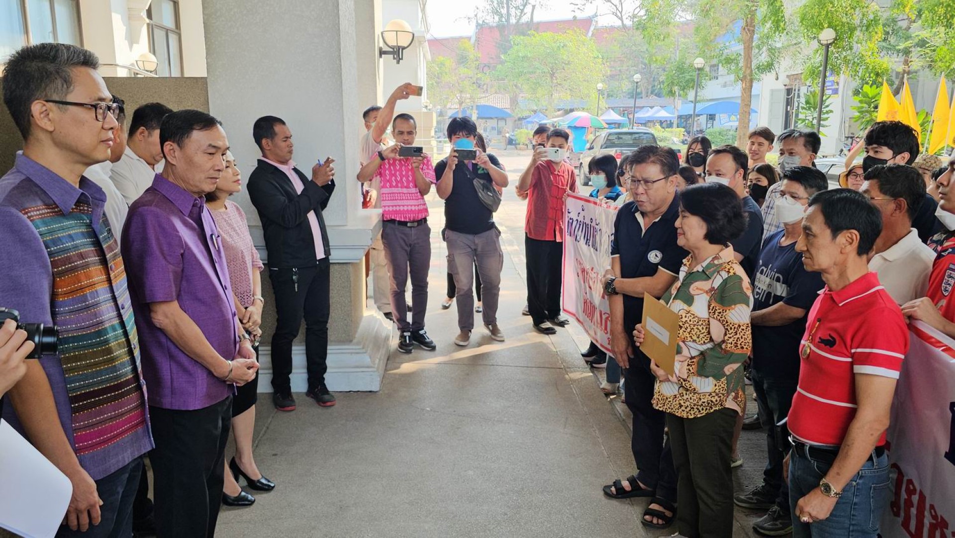 ที่บริเวณหน้าศาลากลางจังหวัดสมุทรสงคราม นายชินชัย สถิรยากร นายกสมาคมเรือลากคู่ สมุทรสงคราม นางสาวิกา ศิริบุญญาวงค์ ประธานสหกรณ์ประมงแม่กลอง จำกัด และนายสมพร สมุทรโสภากุล อุปนายกสมาคมประมงสมุทรสงคราม และผู้ประกอบการเรือประมง พร้อมป้ายข้อความ “สัตว์น้ำนำเข้าถล่มตลาด ราคาตกต่ำ ต้นทุนสูง” “ท่านผู้ว่าฯช่วยชาวประมงด้วย ชาวประมงทนไม่ไหวแล้ว” ได้เดิน เข้ายื่นหนังสือถึงนายศิริศักดิ์ ศิริมังคะลา ผู้ว่าราชการจังหวัด(ผวจ.)สมุทรสงคราม เพื่อประสานหน่วยงานที่เกี่ยวข้องให้ช่วยหาแนวทางหรือมาตราการแก้ไขปัญหาราคาสินค้าสัตว์น้ำตกต่ำ อย่างเร่งด่วน โดยมี นายรนัสถ์ชัย พุ่มเจริญ รอง ผวจ.สมุทรสงคราม นายบัณฑิต กุลละวณิชย์ ประมงจังหวัดสมุทรสงคราม และนางกฤษญาพร สุนทรพจน์ พาณิชย์จังหวัดสมุทรสงคราม ร่วมรับหนังสือฯ ดังกล่าว
