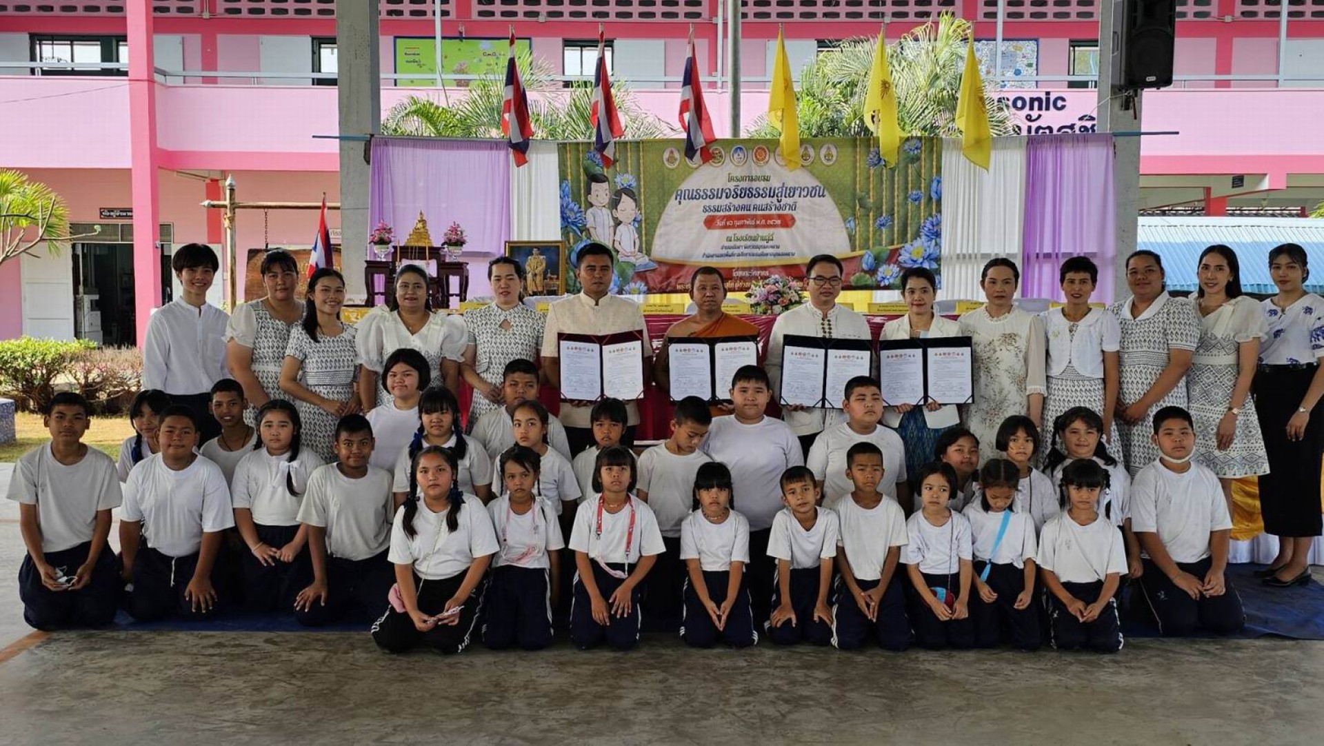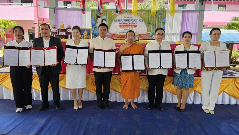 ที่โรงเรียนบ้านฉู่ฉี่ ต.บางจะเกร็ง อ.เมือง จ.สมุทรสงคราม พระปลัดสมศักดิ์ อัตตสุโภ ผู้ช่วยเจ้าอาวาสวัดบางกะพ้อม เป็นประธานฝ่ายสงฆ์, นายสุภัฏ อาลากุล ผอ.กลุ่มนิเทศ ติดตาม และประเมินผลการจัดการศึกษา สำนักงานเขตพื้นที่การศึกษาประถมศึกษา(สพป.)สมุทรสงคราม เป็นประธานฝ่ายฆราวาส นำผู้อำนวยการโรงเรียน 5 แห่ง ประกอบด้วย โรงเรียนบ้านฉู่ฉี่, โรงเรียนคลองตาจ่า (คงจีบอุทิศ), โรงเรียนวัดบางสะแก (ล้อมประชานุกูล), โรงเรียนวัดบางประจันต์ (หวังเจริญราษฎร์นุกูล) และ โรงเรียนวัดจันทร์เจริญสุข ลงนามความร่วมมือในการขับเคลื่อน "เครือข่ายส่งเสริมคุณธรรม จริยธรรมสู่สถานศึกษา" ระหว่างวัดบางกะพ้อม กับ สพป.สมุทรสงคราม เพื่อความร่วมมือในการส่งเสริมและสนับสนุนพร้อมทั้งร่วมกันพัฒนาปรับปรุง เสนอแนะ แลกเปลี่ยนความคิดเห็นและประสบการณ์ ในการขับเคลื่อนการดำเนินงานตามโครงการโรงเรียนคุณธรรม สพฐ. โดยเครือข่ายส่งเสริมคุณธรรมจริยธรรมสู่สถานศึกษา ให้บรรลุตามวัตถุประสงค์เพื่อเป็นการเสริมสร้างและเพิ่มพูนองค์ความรู้ ความเข้าใจเกี่ยวกับการบริหารจัดการด้านการศึกษาให้สอดคล้องกับบริบทของสังคมในปัจจุบัน โดยมุ่งเน้นให้เยาวชนมีความรู้คู่คุณธรรม