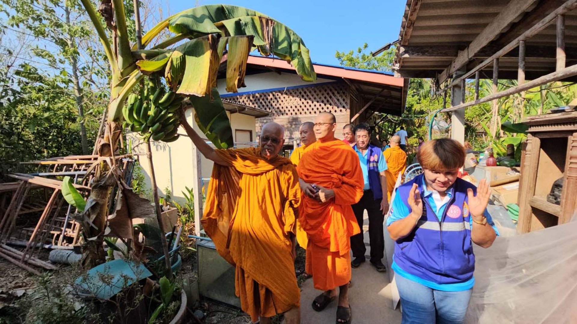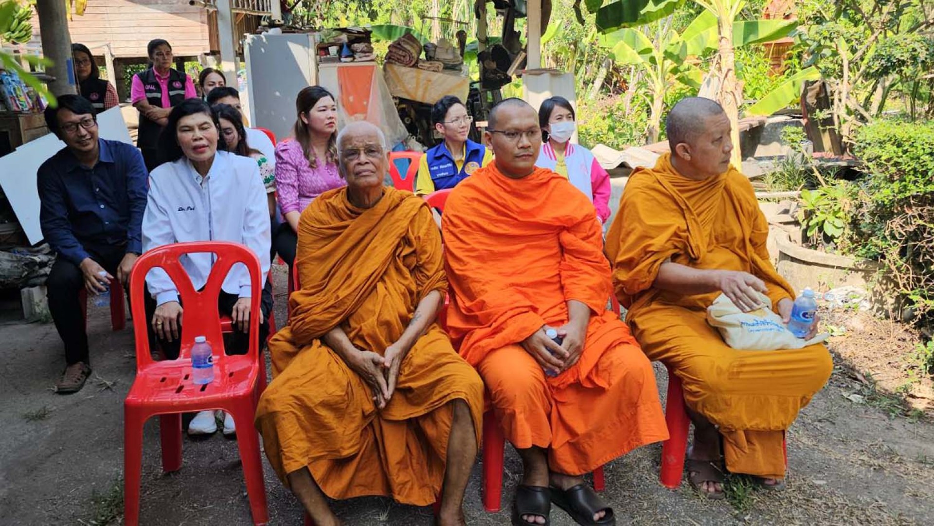 พระเมธีวัชรประชาทร(ผศ.ดร.หลวงพ่อแดง นันทิโย) กล่าวว่า คณะสงฆ์วัดอินทาราม ร่วมกับฝ่ายสาธารณสงเคราะห์จังหวัดสมุทรสงคราม และบูรณาการร่วมกันระหว่าง บ้าน วัด ราชการ พลัง(บ.ว.ร) สอดคล้องกับบันทึกข้อตกลงความร่วมมือของ จ.สมุทรสงคราม กับคณะสงฆ์ใน “บทบาทในการเกื้อหนุนวัดและชุมชนให้มีความสุขอย่างยั่งยืน” เพื่อแก้ไขช่วยเหลือความเดือดร้อนของ ประชาชน ผู้ด้อยโอกาส ผู้สูงอายุ ให้มีที่อยู่อาศัยมั่นคง แข็งแรง และปลอดภัย โดยที่ผ่านมา ได้ดำเนินการก่อสร้าง บ้านพระสงฆ์เอื้ออาทรให้ประชาชนไปแล้ว จำนวน 14 หลัง ล่าสุดครั้งนี้ น.ส.ฐิตาภา เสมอจิตต์ อสม. และ อพม.ต.บางช้าง ได้ส่งรายชื่อผู้ประสบปัญหาทางสังคมในพื้นที่ ไปยังนายธนัย พ้นภัย ปธ.อสม.จ.สมุทรสงคราม จึงได้ลงพื้นที่ตรวจสอบพบว่า น.ส.ปาริชาต สภาพเดิมมีความทรุดโทรเป็นอย่างมาก หลังคาผุพัง พื้นบ้าน เสียหาย ฝาบ้านปลวกกิน เสาผุ ซึ่งต่อมาวัดอินทาราม ผู้ใหญ่บ้าน และกำนัน และ อบต. ได้ประชุมหาแนวทางช่วยเหลือ โดยได้งบจากโครงการ พระสงฆ์เอื้ออาทร สร้างบ้านให้ประชาชนฟรี ของมูลนิธิวัดอินทาราม, และ เงินทำบุญจาก รศ.ดร.อภิญญา ฉัตรช่อฟ้า อาจารย์จาก มจร. รวมทั้งผู้ใจบุญร่มกันบริจาคเงินรวม 57,900 บาท ใช้สำหรับซื้อวัสดุอุปกรณ์ 47,754 บาท และจิตอาสาในพื้นที่สนับสนุนแรงงาน ในการก่อสร้างบ้านหลังนี้จนแล้วเสร็จ รวมปัจจัย จนสามารถใช้เป็นที่อยู่อาศัยเสร็จเรียบร้อยแล้ว จึงมาทำพิธีส่งมอบบ้าน ในครั้งนี้ เป็นหลังที่ 15 ส่วนเงินที่เหลือยังได้มอบให้กับ น.ส.ปาริชาต เป็นเงินทุนตั้งต้นชีวิตใหม่อีกจำนวน 10,146 บาท ด้วย