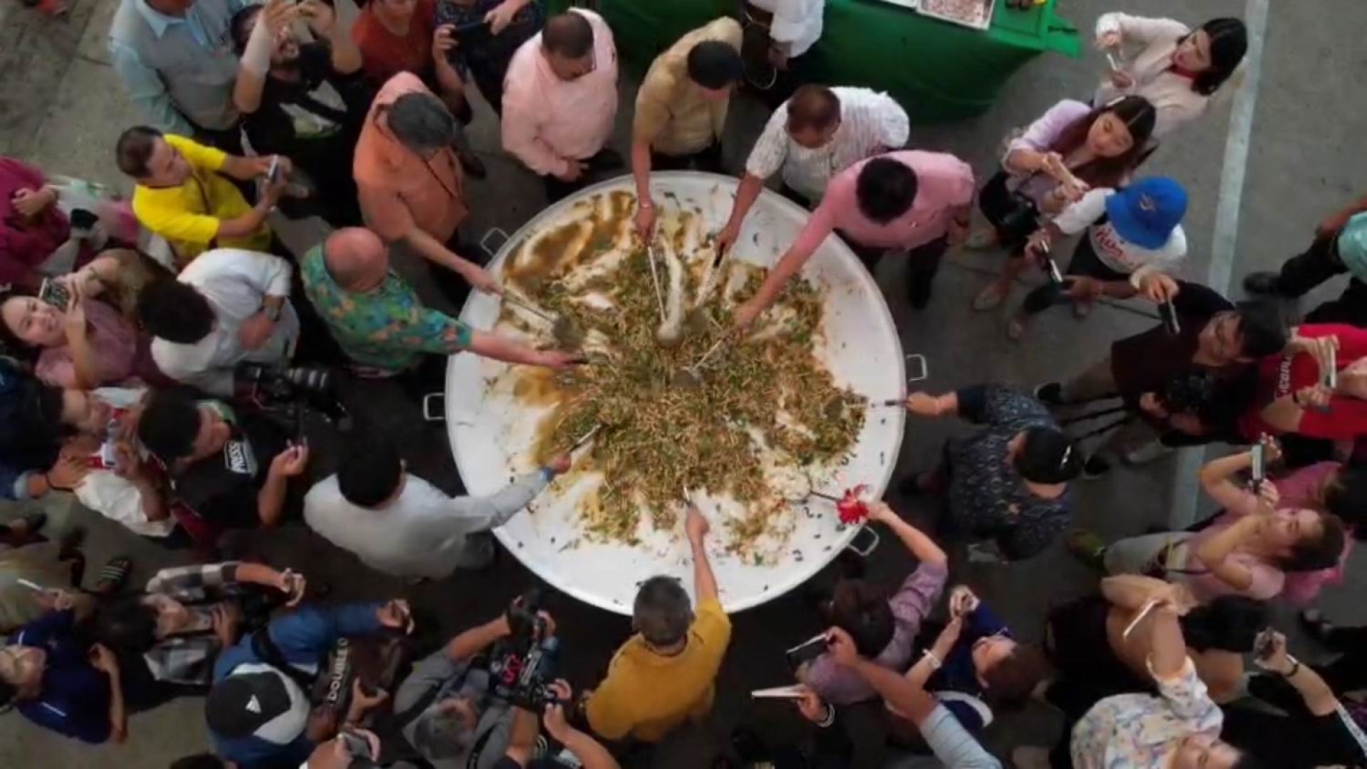 โดยการแถลงข่าววันนี้ชมรมร้านอาหารจังหวัดสมุทรสงคราม ได้จัดให้มีการโชว์ผัดฉ่าหอยหลอดกระทะยักษ์ โดยผู้ว่าราชการจังหวัดฯ พร้อมผู้ที่เกี่ยวข้องได้ร่วมผัดฉ่าหอยหลอดกระทะยักษ์ ใหญ่ที่สุดในโลก ขนาดกระทะเส้นผ่านศูนย์กลาง 2 เมตร เพราะไม่เคยมีใครทำมาก่อน ซึ่งใช้หอยหลอดสดถึง 19 กิโลกรัม พริกขี้หนู 3 ก.ก. กระชาย 2 ก.ก. ยอดมะพร้าว 1 ก.ก. ใบกระเพา ครึ่ง ก.ก. กระเทียมครึ่ง ก.ก. ส่วนเครื่องปรุง เช่น น้ำตาลทราย น้ำมันหอย น้ำปลา เครื่องปรุง ก็แล้วแต่คนผัดจะใส่เท่าไหร่ เพราะ อร่อยแล้วแต่จำสูตรไม่ได้ อย่างไรก็ตามหลังจากผัดเสร็จ ผู้ว่าราชการจังหวัดฯก็ได้ตักแจกจ่ายให้กับนักท่องเที่ยว