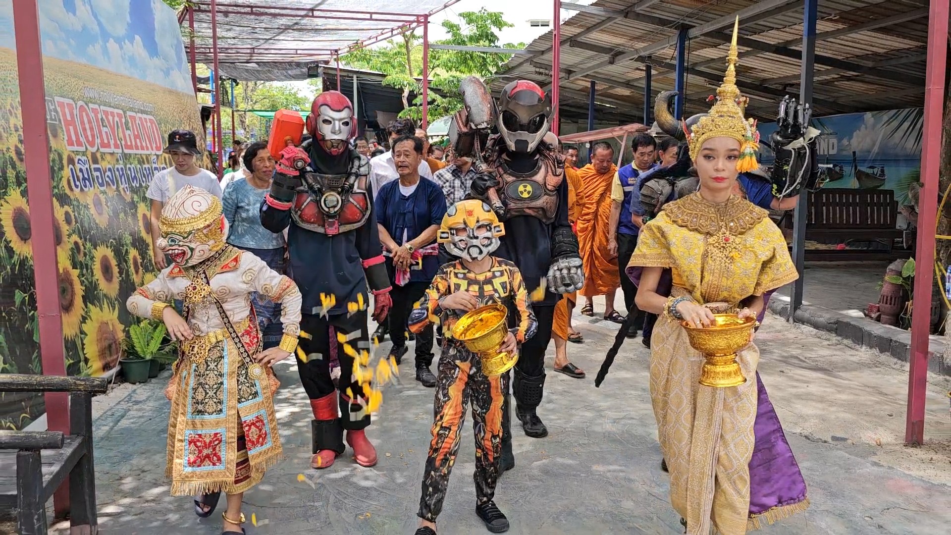 ที่โคก หนอง นา อารยเกษตร วิสาหกิจชุมชนเมืองหุ่นเหล็ก (Holy Land) เลขที่ 50 หมู่ 5 ต.คลองโคน อ.เมือง จ.สมุทรสงคราม ได้มีพิธีมอบพ่อพันธุ์แม่พันธุ์วัว ตามโครงการธนาคารวัวหลวงพ่อแดง วิถีเกษตรพอเพียง ตามรอยศาสตร์พระราชา พระบาทสมเด็จพระบรมชนกาธิเบศร มหาภูมิพลอดุลยเดชมหาราช บรมนาถบพิตร รัชกาลที่ 9 เพื่อส่งเสริมอาชีพเกษตรกรและสร้างแหล่งเรียนรู้ ซึ่งเป็นแห่งที่ 2 ใน จ.สมุทรสงคราม และเป็นภาคเอกชนแห่งแรกในจังหวัดที่เข้าร่วมโครงการดังกล่าว โดยมีพระเมธีวัชรประชาทร(ผศ.ดร.หลวงพ่อแดง นันทิโย) ที่ปรึกษาเจ้าคณะภาค 15 เจ้าอาวาสวัดอินทาราม ต.เหมืองใหม่ จ.อัมพวา จ.สมุทรสงคราม เป็นประธานฝ่ายสงฆ์, นายศิริศักดิ์ ศิริมังคะลา ผวจ.สมุทรสงคราม เป็นประธานฝ่ายฆราวาส เปิดป้ายวิสาหกิจชุมชนเมืองหุ่นเหล็ก ณ คลองโคน และคล้องพวงมาลัยวัว โดยพระเมธีวัชรประชาทร, ผศ.ดร. หลวงพ่อแดง นันทิโย จะทำพิธีเจิมป้ายและเจิมหน้าผาก พ่อพันธุ์แม่พันธุ์วัว 1 คู่ มูลค่าตัวละ 25,000 บาท เพื่อมอบให้กับนายศักดิ์สิทธิ์ วัชรฐิติเปรมชัย ประธานวิสาหกิจชุมชนเมืองหุ่นเหล็ก สำหรับวัวเพศผู้ ชื่อ “ทองคำ” สีขาว อายุ 4 ปี สายพันธุ์ลูกผสมชาร์โรเล่ส์ ส่วนเพศเมียชื่อ “น้ำเพชร” สีขาวเช่นกัน พันธุ์บราห์มันผสมไทยใหญ่ อายุ 10 ปี กำลังตั้งท้องประมาณ 4 เดือน โดยประธานและสมาชิกวิสาหกิจชุมชน เมืองหุ่นเหล็ก ตลอดจนสมาชิกเครือข่ายกสิกรรมธรรมชาติ และโคก หนอง นา จ.สมุทรสงครามได้กล่าวปฏิญาณตนรักษาศีล 5 จะเป็นคนดี ทำประโยชน์เพื่อชุมชนและสังคมต่อไป