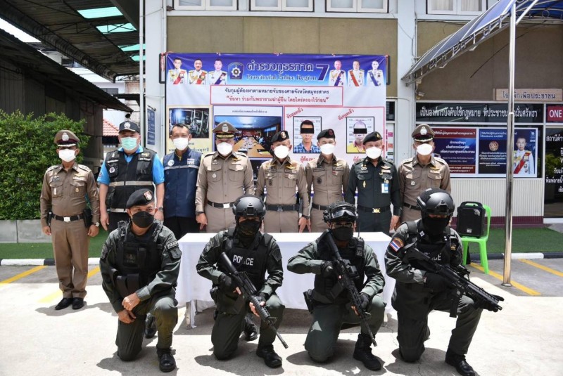 สมุทรสาคร : วันนี้(22 ส.ค. 65) พล.ต.ท.ธนายุตม์ วุฒิจรัสธำรงค์ ผบช.ภ.7 พร้อมด้วย พล.ต.ต.บุญญฤทธิ์ รอดมา รอง ผบช.ภ.7 พล.ต.ต.อภิชาติ วรรณภักดิ์ ผบก.ภ.จว.สมุทรสาคร พร้อมเจ้าหน้าที่ที่เกี่ยวข้อง ร่วมกันแถลงข่าวจับกุมตัวผู้ต้องหาตามหมายจับ ก่อคดีอุกฉกรรจ์สะเทือนขวัญ จำนวน 2 ราย ได้แก่
