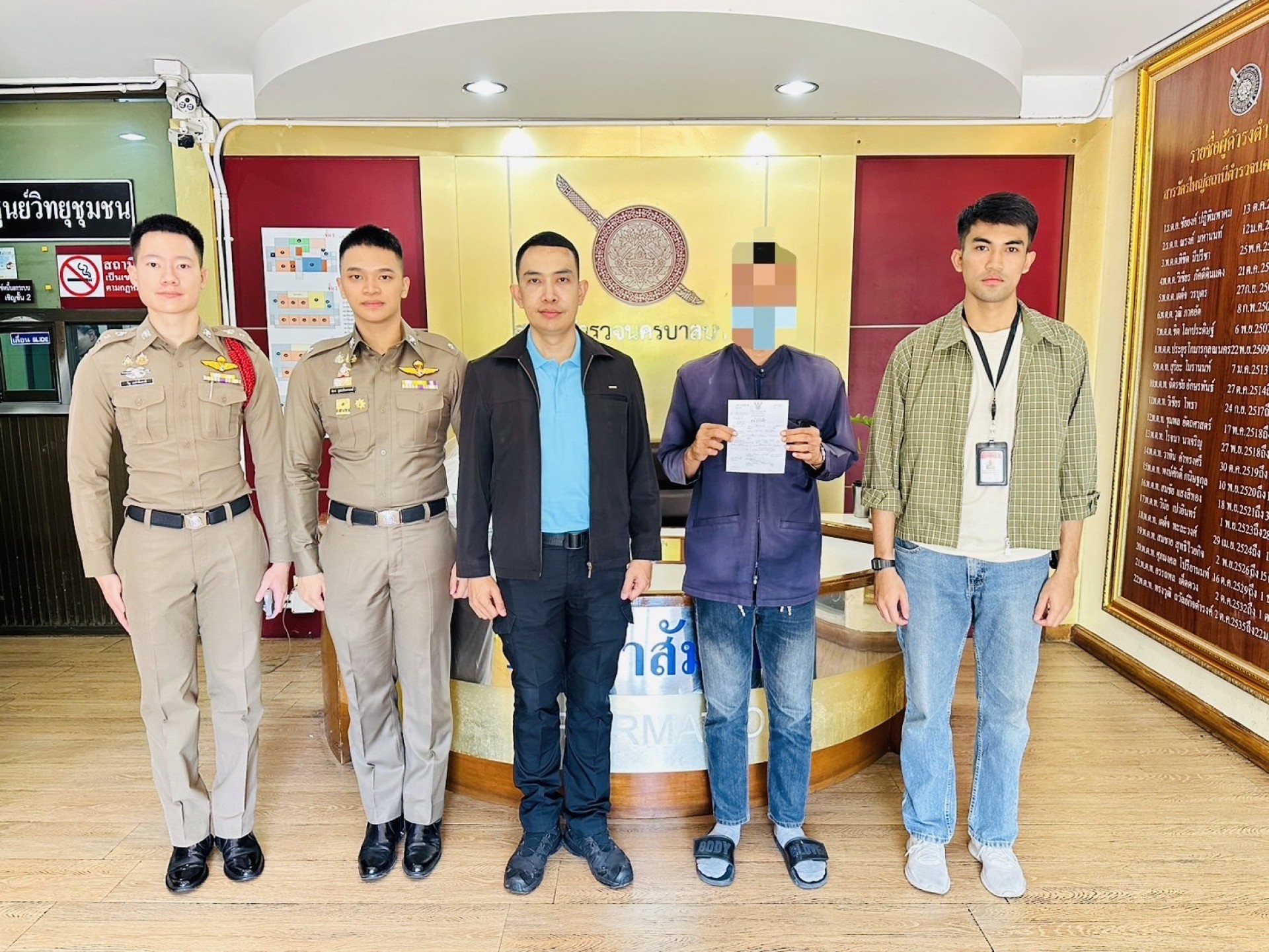 นาย ธนากร (สงวนนามสกุล)ได้ทำบันทักจับกุม/ทำประวัติอาชญากรรม/และนำส่งพนักงานสอบสวน เพื่อดำเนินคดีต่อไป