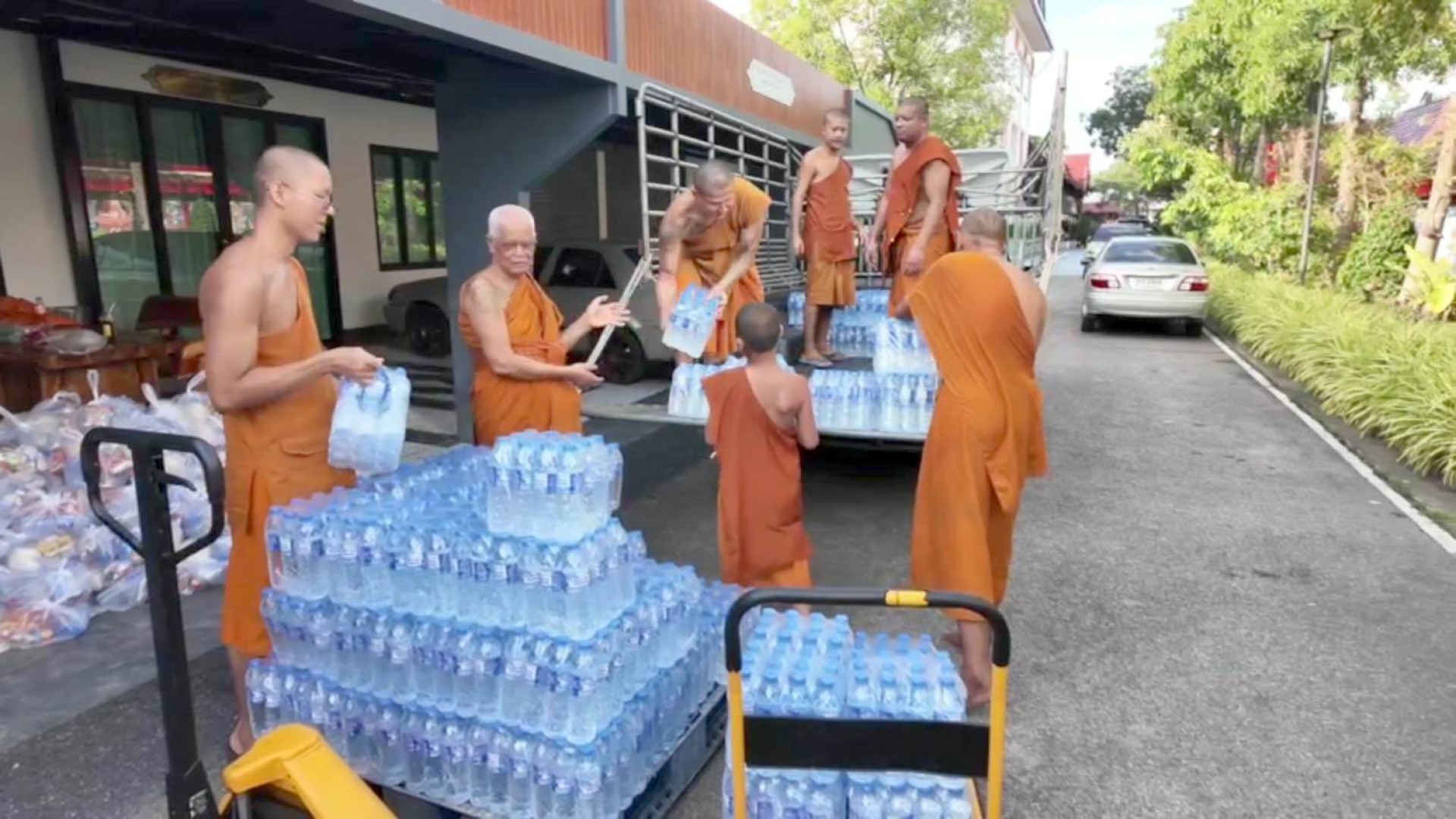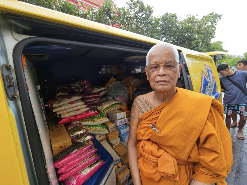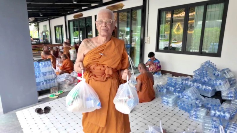 ผู้สื่อข่าวรายงานว่า จากสถานการณ์น้ำท่วมในหลายจังหวัดทางภาคเหนือ ทำให้พี่น้องประชาชนได้รับความทุกข์ยากลำบากในการใช้ชีวิตอย่างล้นเหลือ โดยเฉพาะความเป็นอยู่อาหารการกินที่เดือดร้อนอย่างมาก บางรายถึงกับไม่มีข้าวกินประทังชีวิต ดังนั้นพระเมธีวัชรประชาทร(ผศ.ดร.หลวงพ่อแดงนันทิโย) ที่ปรึกษาเจ้าคณะภาค 15 เจ้าอาวาสวัดอินทาราม ประธานฝ่ายสาธารณสงเคราะห์คณะสงฆ์จังหวัดสมุทรสงคราม ภาค 15 .สมัชชาพระสงฆ์ผู้นำขับเคลื่อน หมู่บ้านรักษาศีล 5 หนกลาง, หน่วยอบรมประชาชนประจำตำบลเหมืองใหม่ (อ.ป.ต.) ได้นำคณะศิษย์วัดอินทาราม และ เครือข่ายโครงการ พระสงฆ์ไม่ทิ้งประชาชน จัดแพคถุงยังชีพ ประกอบด้วยข้าวสาร, ปลากระป๋อง, บะหมี่กึ่งสำเร็จรูป น้ำดื่ม และผักสด ลงในถุงขนาดใหญ่วันละ 500 ชุด นอกจากนี้ยังมีเทียนพรรษากว่า 100 เล่ม พร้อมยารักษาโรค สังฆทาน และอาหารสุนัข ขนขึ้นรถกระบะสวมคอกเดินทางไปแจกจ่ายให้กับประชาชนที่ประสบภัยน้ำท่วมในสุโขทัย และพื้นที่ใกล้เคียง โดยจะดำเนินการไปจนกว่าสถานการณ์น้ำท่วมในภาคเหนือ และภาคกลาง จะคลี่คลาย