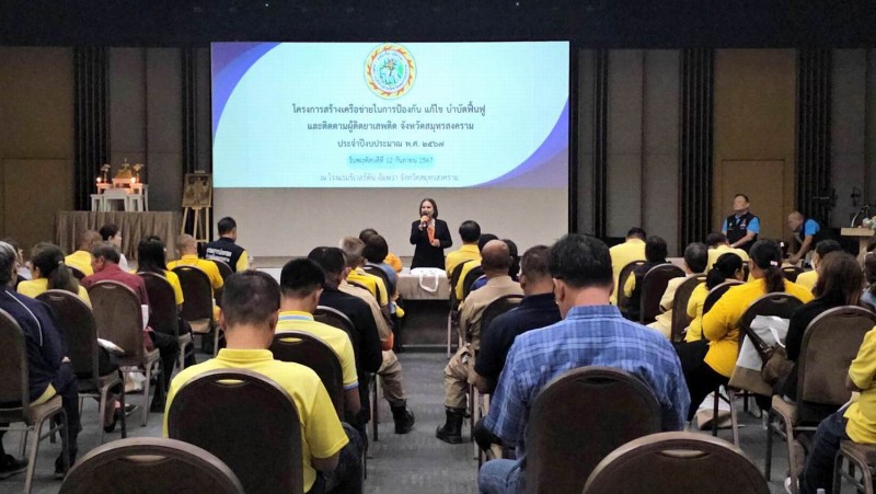 ที่ ร.ร.ริเวอร์ตันอัมพวา ต.ลาดใหญ่ อ.เมือง จ.สมุทรสงคราม น.ส.กาญจน์สุดา ปานะสุทธะ นายกองค์การบริหารส่วนจังหวัด(อบจ.)สมุทรสงคราม เป็นประธานเปิดการอบรม สร้างเครือข่ายในการป้องกัน แก้ไข บำบัดฟื้นฟู และติดตามผู้ติดยาเสพติดจังหวัดสมุทรสงคราม ประจำปีงบประมาณ พ.ศ. 2567 ที่ อบจ.สมุทรสงครามร่วมกับอำเภอเมืองสมุทรสงคราม, สาธารณสุขอำเภอเมืองสมุทรสงคราม สถานีตำรวจภูธรเมืองสมุทรสงครามได้จัดร่วมกันจัดขึ้น เพื่อสร้างการรับรู้กฎหมายและการอำนวยความยุติธธรรมให้แก่ประชาชนในพื้นที่ อีกทั้งเพื่อส่งเสริมการมีส่วนร่วมของประชาชนในการป้องกันปัญหาอาชญากรรมในพื้นที ส่งเสริม ดูแล แก้ไขฟื้นฟูผู้กระทำผิด และผู้ติดยาเสพติดในชุมชนแบบทีมบูรณาการ สร้างครือข่ายในการป้องกัน แก้ไข บำบัดฟื้นฟู และติดตามผู้ติดยาเสพติด โดยมีผู้เข้าร่วมโครงการเป็น สมาชิกสภาองค์การบริหารส่วนจังหวัดสมุทรสงคราม เขตอำเภอเมืองสมุทรสงคราม จำนวน 13 คน เครือข่ายภาคประชาชน และผู้นำชุมชน ในเขตอำเภอเมืองสมุทรสงคราม จำนวน 80 คน และเจ้าหน้าที่อบจ.สมุทรสงคราม จำนวน 7 คน รวมทั้งสิ้นจำนวน 100 คน เข้ารับความรู้เรื่อง สถานการณ์ยาเสพติดในปัจจุบัน และประมวลกฎหมายยาเสพติดฉบับใหม่ การฝึกปฏิบัติจริง กระบวนการทำงานชุมชนยั่งยืน ชั้นตอนที่ 1 ขั้นตอนที่ 2 และขั้นตอนที่ 3 รวมทั้ง การรักษาสภาพชุมชน และแนวทางส่งต่อความยั่งยืน ตลอดจน บทบาทและหน้าที่ในการเป็นผู้ช่วยเจ้าพนักงาน ด้านการป้องกันบำบัดรักษา และฟื้นฟูทางสังคมให้กับผู้ติดยาเสพติด ก่อนจะ สรุปบทเรียน เทคนิคและแนวทางในการทำงานชุมชนยั่งยืนให้ประสบความสำเร็จ โดยได้รับการสนับสนุนวิทยากรในการให้ความรู้ จากสำนักงานตำรวจแห่งชาติ