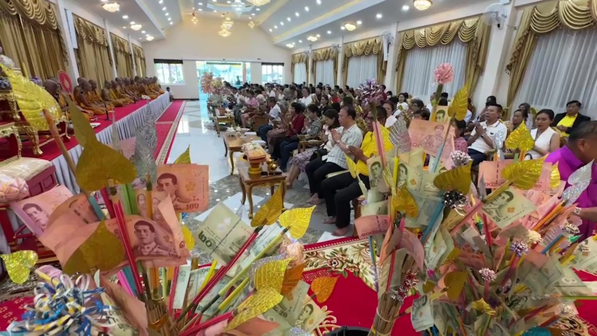 จากนั้นนางผาสุก ถวายผ้ากฐิน ถวายแด่ พระเมธีวัชรประชาทร เจ้าอาวาสวัดอินทาราม ในการนี้มี อาจารย์ ดร.โปรดปราณ เสริญวงค์สัตย์, นายสุเทพ เพ็งอุดม กำนันตำบลเหมืองใหม่, นายสมศักดิ์ รัตนากร นายก อบต.หมืองใหม่ นายพรพิพัฒน์ ปานรัตน์, นายวิฑูรย์ สรสั่งอาจ, นายวีระเดช รุ่งโรจน์ธนกุล และ นิสิตนักศึกษา หน่วยวิทยบริการ คณะสังคมศาสตร์ วัดอินทาราม จังหวัดสมุทรสงคราม ร่วมถวายผ้ากฐินสามัคคี มีผู้ร่วมพิธีกันเป็นจำนวนมาก ทำให้ได้ยอดเงินทำบุญ 875,855 บาท ซึ่งเงินจำนวนดังกล่าว จะสมทบบำรุงซ่อมแซมวิหารหลวงพ่อโต และสมทบ ทุนการศึกษาของพระภิกษุสงฆ์และสามเณร ต่อไป