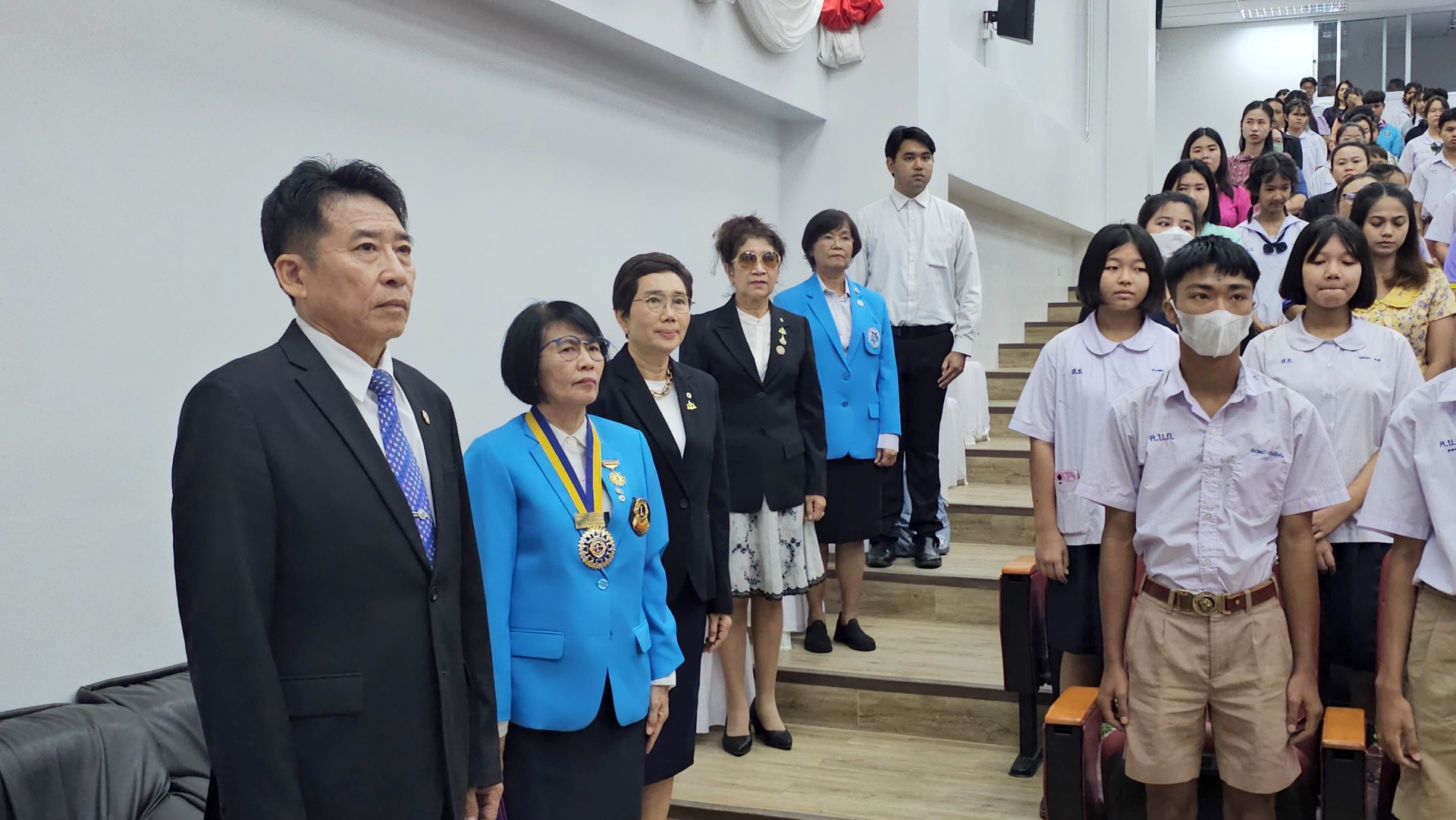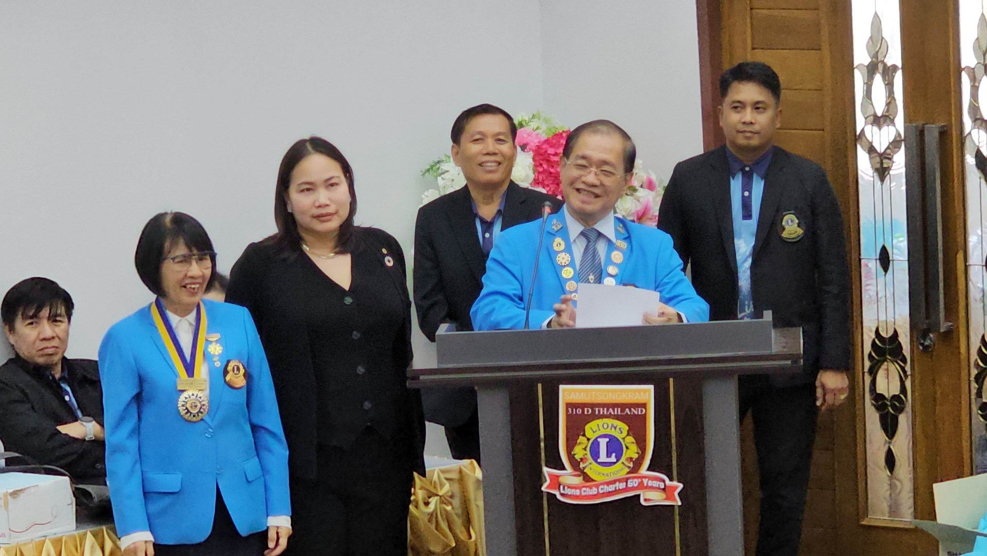 จากนั้นไลออนมนตรี เล็กวิจิตรธาดา อดีตนายกสโมสรไลออนส์สมุทรสงคราม อ่านแนวพระราชดำริพระบาทสมเด็จพระบรมชากาธิเบศร มหาภูมิพลอดุลยเดชมหาราช บรมนาถบพิตร และ ร่วมกันร้องเพลงสรรเสริญพระบารมี กันดังกึกก้องทั้งหอประชุม