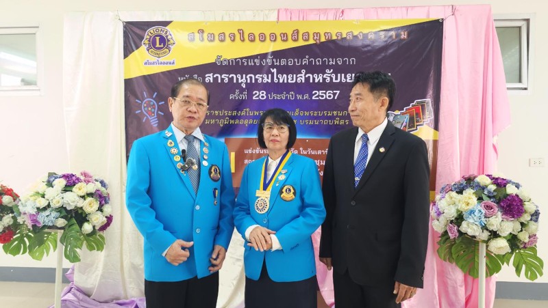ไลออนพยอม กล่าวว่า การแข่งขันตอบคําถามสารานุกรมไทยสําหรับเยาวชน ดําเนินการโดยสโมสรไลออนส์สากลภาครวม 310 ประเทศไทย ร่วมกับมูลนิธิโครงการสารานุกรมไทยสําหรับเยาวชนฯ และสํานักงานคณะกรรมการการศึกษาขั้นพื้นฐาน โดยจัดให้มีการแข่งขัน 3 ระดับคือ ระดับจังหวัด จัดแข่งขันพร้อมกันทั่วประเทศ วันเสาร์ที่ 23 พฤศจิกายน 2567 ระดับภาค แข่งขันวันเสาร์ที่ 14 ธันวาคม 2567 และระดับประเทศ แข่งขันวันเสาร์ที่ 18 มกราคม 2568 เพื่อตอบสนองพระราชประสงค์ในพระบาทสมเด็จพระบรมชนกาธิเบศร มหาภูมิพลอดุลยเดชมหาราช บรมนาถบพิตร เพื่อที่จะส่งเสริมเพิ่มแหล่งเรียนรู้ให้มากขึ้นในเด็ก เยาวชนและประชาชนทั่วไป โดยโรงเรียนที่ได้คะแนสูงสุดของแต่ละระดับจะเป็นตัวแทนของจังหวัดสมุทรสงคราม เพื่อไปแข่งขันในระดับภาคต่อไป