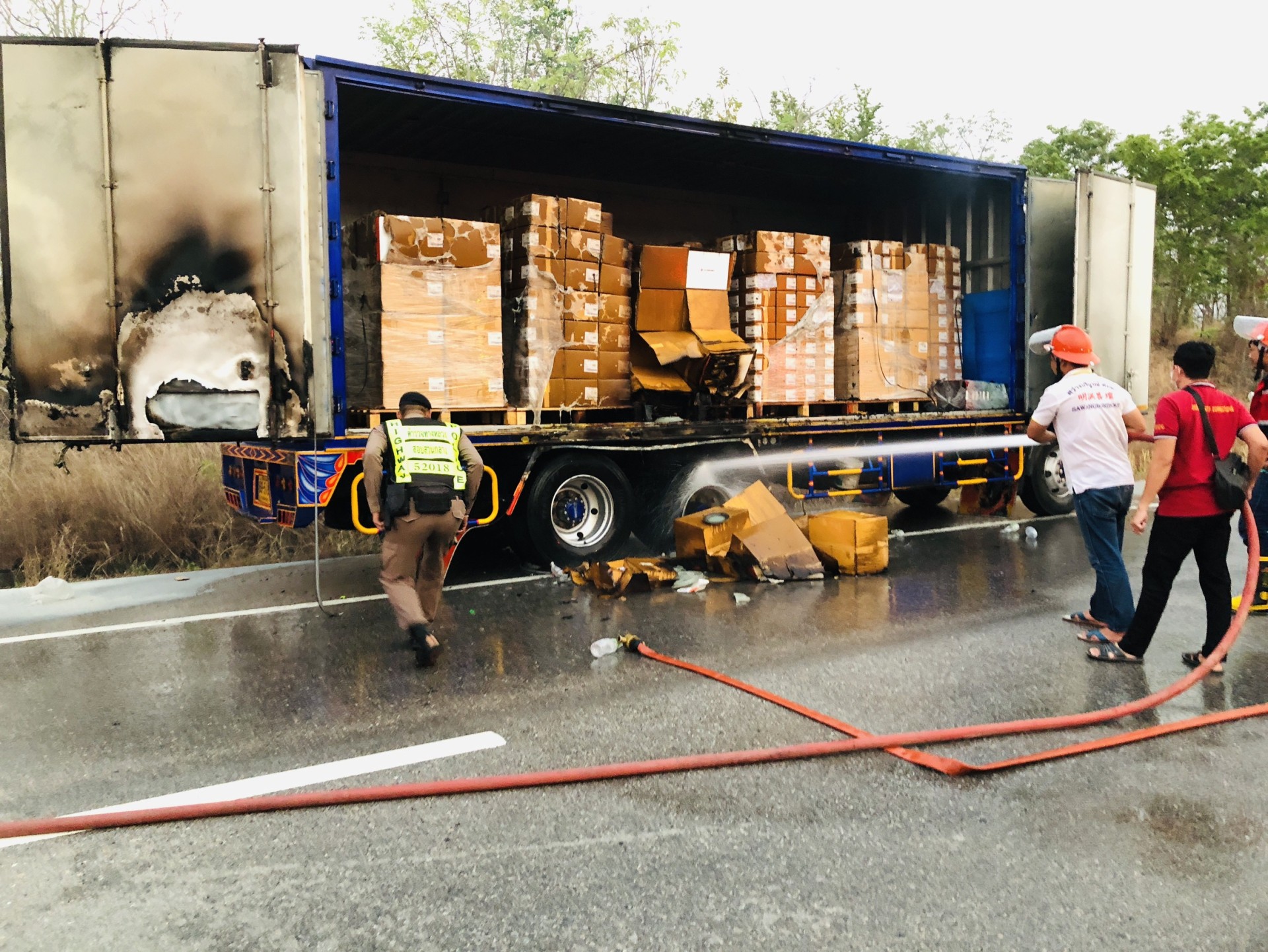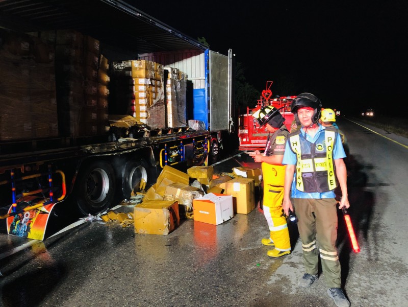 หน่วยบริการประชาชนตำรวจทางหลวงเกาะคา (ส.ทล.2 กก.5 บก.ทล.) เหตุไฟไหม้รถบรรทุก