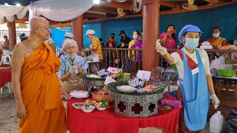 และในวันที่ 13 เม.ย. เวลา 13.00 น. ซึ่งเป็นวันเปิดงาน นางนิศากร วิศิษฏ์สรอรรถ ผู้ว่าฯ สมุทรสงคราม จะมาปรุงแกงเขียวหวานเป็ดย่างใส่ลิ้นจี่เป็นปฐมฤกษ์ จากนั้นจะมีการประกวดการปรุงแกงเขียวหวานเป็ดย่างใส่ลิ้นจี่รสอร่อยจากแม่ครัวทั่วไป ชิงเงินรางวัล 10,000 บาท 7,000 บาท และ 5,000 บาทตามลำดับ ผู้สนใจสมัครเข้าแข่งขันทีมละ 3 คน รับสมัครไม่จำกัดจำนวนทีม เพศ และอายุ เพียงแต่ต้องใช้เตาถ่านในการปรุงเท่านั้น ห้ามใช้เตาแก๊สหรือเตาไฟฟ้า ทุกทีมที่เข้าแข่งขันทางวัดมีค่าใช้จ่ายให้เป็นค่าวัตถุดิบทีมละ 2,000 บาท