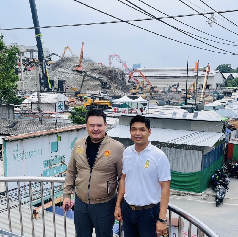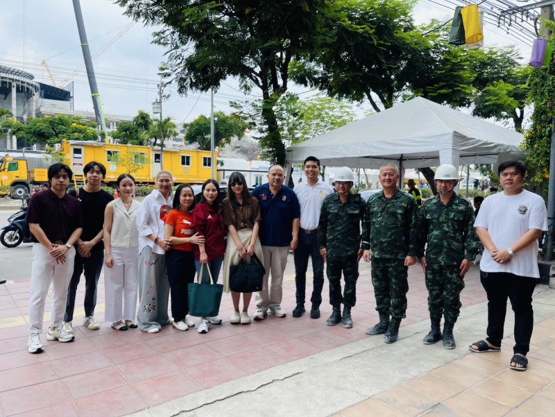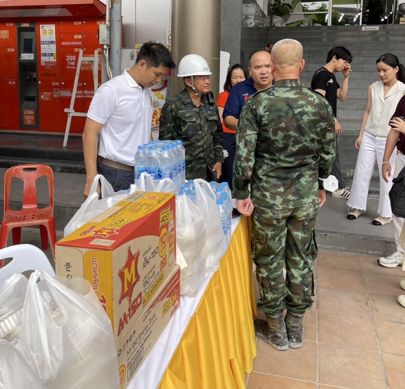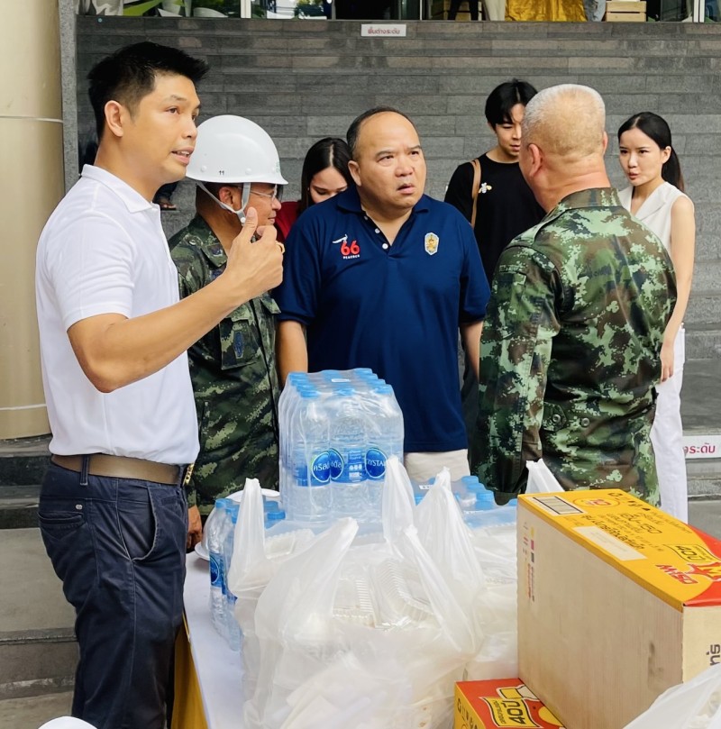 วันนี้ เวลา 14:30 น. พลตรี นฤดล สุขมา จ้ากรมจเรทหารบก กองทัพบก พร้อมด้วยครอบครัว นาบชณทัต ปัทะมะภูวดล คณะทำงานรองเลขาธิการนายกรัฐมนตรีฝ่ายการเมือง นางสาวธนิภา พุ่มเรือง กรรมการผู้จัดการบริษัทไทยดีเอฟ 2564 จำกัด นาย สุจิ ก อมรวชิรวงศ์ และคุณสิงห์ เจ้าของร้าน โรงน้ำชา90 ได้มอบข้าวกล่อง น้ำดื่ม เครื่องดื่มบำรุงกำลังขนม เพื่อเป็นขวัญและกำลังใจแก่เจ้าหน้าที่ผู้ปฏิบัติงานกู้ตึก สตง. ถล่ม เนื่องจากเป็นวันหยุดสงกรานต์เจ้าหน้าที่ยังทำงานกันอย่างต่อเนื่อง