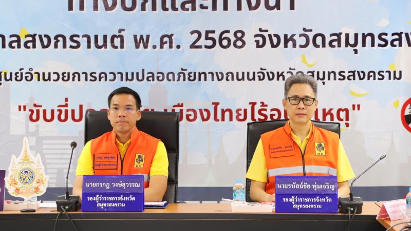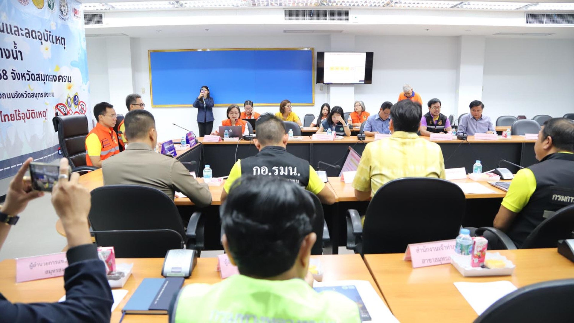 ที่ห้องประชุมชั้น 4 ศาลากลาง นายกรกฎ วงษ์สุวรรณ รองผู้ว่าราชการจังหวัดสมุทรสงคราม เป็นประธานแถลงข่าวสรุปผลและปิดศูนย์ปฏิบัติการร่วมป้องกันและลดอุบัติเหตุทางบกและทางน้ำช่วงเทศกาลสงกรานต์ พ.ศ. 2568 ระหว่าง วันที่ 11 – 17 เมษายน 2568 ภายใต้หัวข้อการรณรงค์ “ขับขี่ปลอดภัย เมืองไทยไร้อุบัติเหตุ” ว่าเกิดอุบัติเหตุ จำนวน 13 ครั้งถือว่า คงที่ เมื่อเปรียบเทียบกับค่าเป้าหมาย ที่กำหนด (ค่าเฉลี่ย 3 ปีย้อนหลังลดลง 5%) ที่ต้องไม่เกิน 13 ครั้ง มีผู้บาดเจ็บ 12 คน ถือว่า ลดลง 1 คน คิดเป็น 7.69 % เมื่อเปรียบเทียบกับค่าเป้าหมายที่กำหนด (ค่าเฉลี่ย 3 ปีย้อนหลังลดลง 5%) ที่ต้องมีผู้บาดเจ็บไม่เกิน 13 คน เป็นชาย 7 คน หญิง 5 คน และ ไม่มีผู้เสียชีวิตในช่วงควบคุมเข้มข้น 7 วัน การเกิดอุบัติเหตุทางถนน ลดลง จากค่าเฉลี่ยย้อนหลังสามปี จำนวน 4 ครั้ง คิดเป็น 26.67% จากค่าเป้าหมายจำนวน 15 ครั้ง และมีผู้เสียชีวิต จำนวน 1 ราย ถือว่า เพิ่มขึ้น เมื่อเทียบกับค่าเฉลี่ยย้อนหลัง 3 ปี ที่ต้องมีผู้เสียชีวิตเป็นศูนย์ โดยสาเหตุของการเกิดอุบัติเหตุ สามลำดับแรก คือ . ตัดหน้ากระชั้นชิด จำนวน 4 ครั้ง คิดเป็น 30.76 % 2. ดื่มแล้วขับ จำนวน 3 ครั้ง คิดเป็น 23.07 % และ 3. สภาพรถ และ ความเร็วเกินกำหนด อย่างละ 2 ครั้ง คิดเป็น 15.38 %