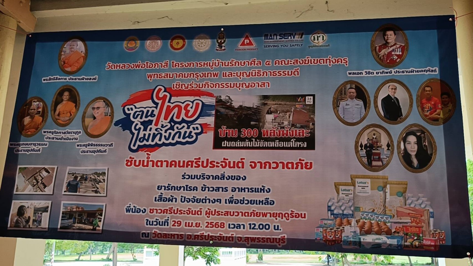 จัดกิจกรรมบุญอาสา "ฅนไทยไม่ทิ้งกัน ซับน้ำตาคนศรีประจันต์ ที่ประสบวาตภัย"