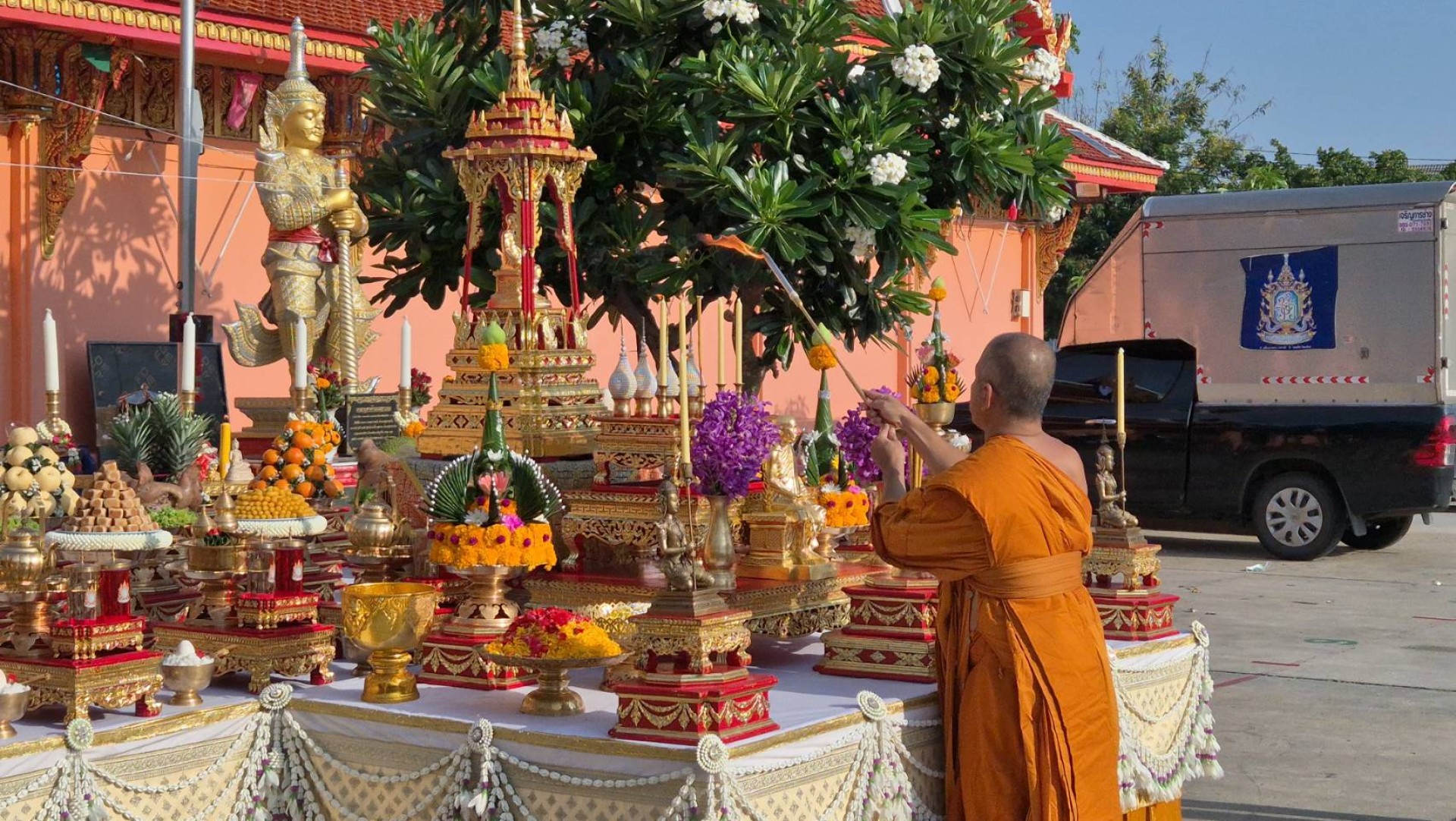 เวลา 6.30 น. ถวายภัตตาหารเช้าแก่พระภิกษุสงฆ์